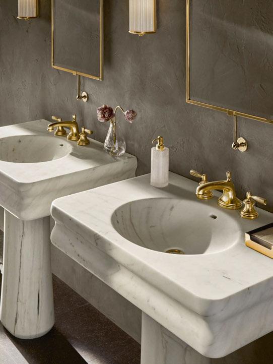 Waterworks has unveiled a new collection of one-of-a-kind stone sinks. Carved from a single block of hand-selected Italian stone, each basin features functional innovations, from sculpted overflows to generous deck surfaces. All sinks are available in two sizes and can be wall-mounted or come with a pedestal base, with a choice of eight stone types to offer creative freedom when creating customised solutions. “Each piece showcases not only the inherent beauty of the material but also the extraordinary skill of our design and fabrication team,” says CEO and Creative Director Peter Sallick. “The results are sculptural centrepieces that feel architectural and special.” www.waterworks.com