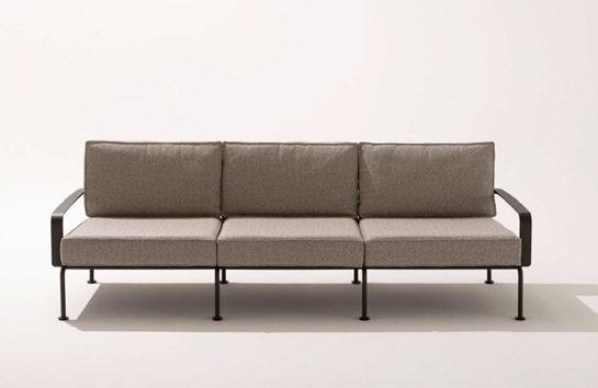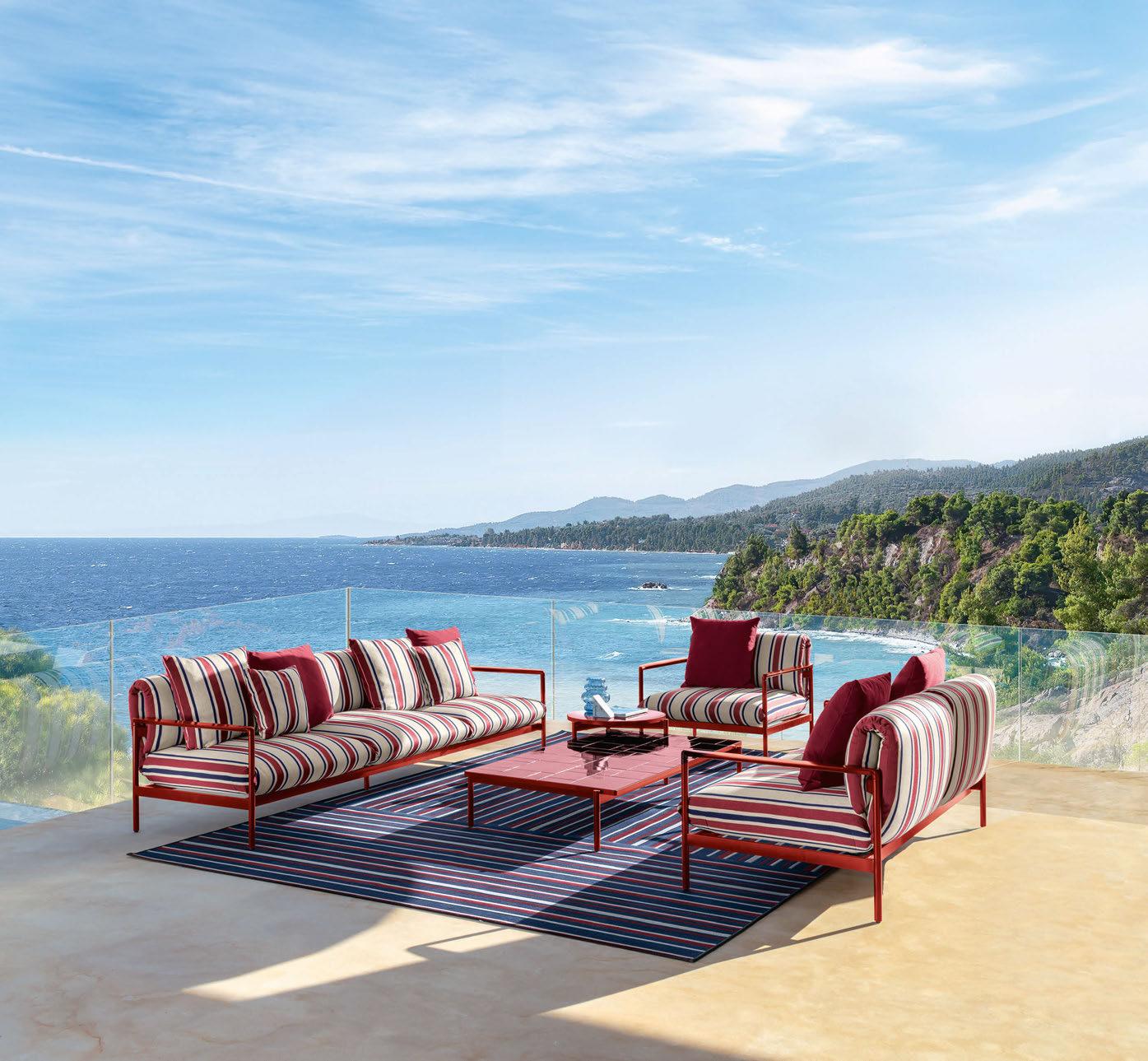 Designed by Piero Lissoni, Stresa is a new living and dining collection in painted aluminium. Named after the Italian town of Stresa on Lake Maggiore, the range spans various outdoor furniture elements – from armchairs, poufs and a two- or threeseater sofa to coffee tables and a rectangular table in two sizes – offering a complete and co-ordinated look. The sofa features an aluminium slat base that engages with a perforated sheet metal backrest to create a small diamond pattern signature to the collection. With Stresa, Roda continues to explore the dialogue between tradition and innovation, quality and technology, with a constant eye on environmental impact, starting with its choice of materials such as aluminium, which is light, durable and recyclable. www.rodaonline.com