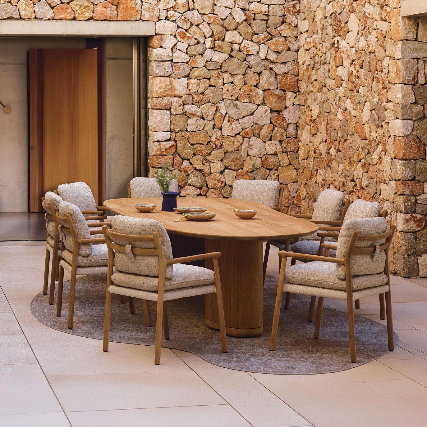Inspired by nature in Africa, the Karen collection by Ludovica+Roberto Palomba is a tribute to writer Karen Blixen that promotes sustainable design. Emphasising aesthetics, craftsmanship and cultural influences, the range blends comfort and durability with curved lines, FSC-certified teak bases and 100% recycled and recyclable woven fabrics made from PET bottles and other waste. These materials reduce water and energy use, and limit carbon emissions. The Karen collection comprises sofas, armchairs, dining tables, coffee tables and daybeds, all suitable for outdoor settings. “We wanted to transport the strength and beauty of this land into the design by focusing on the intertwined details of the two rings that become armrests,” explains the designers. www.talentispa.com