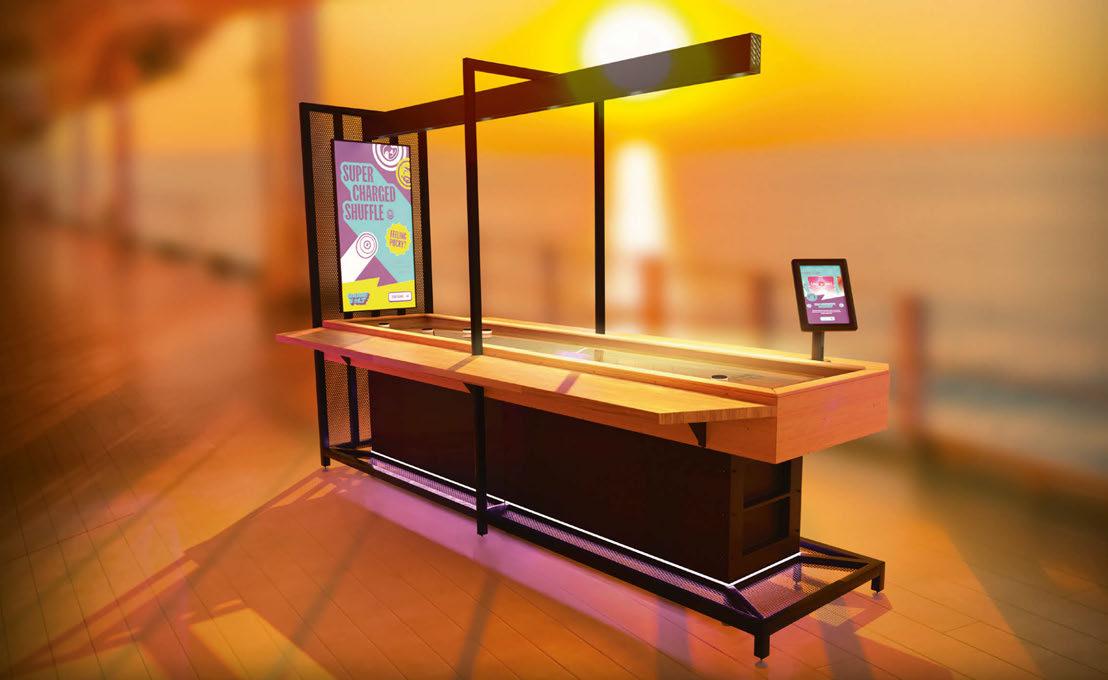 relaxation. Beyond offering a sophisticated game, Supercharged Shuffleboard has been engineered to be a revenue booster for operators. The longer playtime, combined with the multiplayer format, encourages guests to stay and make use of nearby bars and lounges, increasing dwell time and secondary spending on F&B. This innovation taps into the growing trend of competitive socialising, where guests seek engaging group experiences that are both interactive and visually appealing. In an era where traditional social venues are being reimagined, Supercharged Shuffleboard captures the growing demand for activities that blend social connection with an element of competition, making it an ideal fit for luxury mobile hospitality environments that want to offer guests memorable, share-worthy experiences. Supercharged Shuffleboard is a fully immersive, tech-forward experience that perfectly complements the elegance and adventure of luxury cruising, bringing the latest in high-energy social gaming to the high seas. www.game-volt.com