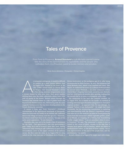 Tales of Provence From Paris to Provence, Arnaud Donckele’s multi-Michelin-starred cuisine tells the story of the land that bore its ingredients and the people who cultivated them, in a Proustian quest to evoke memory and emotion. Words: Shanna McGoldrick • Photography: © Richard Haughton