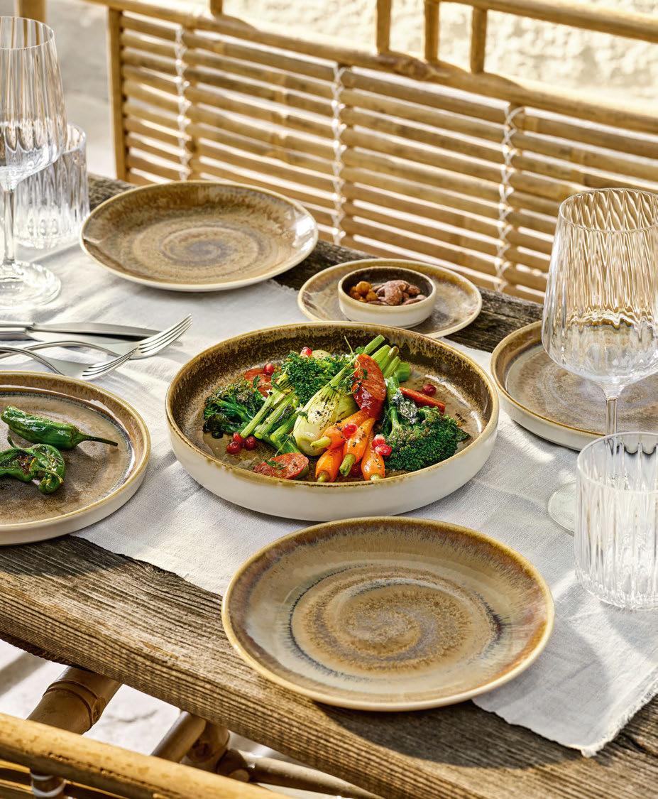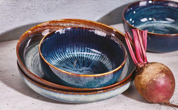 Heart & Soul collection, a new brand from the established BHS Tableware, is sure to inspire diners with its stylish and charming aesthetic. Offering on-trend chinaware for the food service industry with a unique look and feel, Heart & Soul focuses on vitrified china for vibrant table settings, with pieces catering to various food styles, from regional to fine dining. Its Perfect Match collection utilises reactive glazes to produce bespoke, unusual effects and handcrafted one-of-akind items. The series spans 25 different dishes in a total of five combinable colours, meaning it can be configured and adapted to meet the requirements of a variety of hospitality situations.