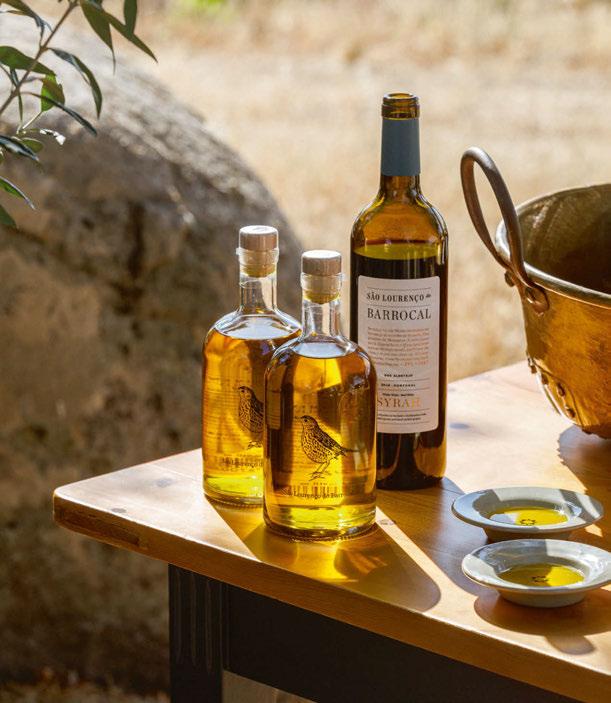 Two varieties of olives have traditionally grown on the estate: the plump green Bical, and the smaller, darker Galega. “In Portugal there are maybe 30 varieties of olive; in this region we only use around five, and 80% of what’s used here for the oil is Galega,” explains Luis Lobato de Faria, a historian who conducts guided tours of the Barrocal estate for guests. The hotel uses both in its olive oil production, creating a 100% Bical DOP, a 100% Galega version and a blend of both. The mill uses a low impact coldpressing process that preserves the olives’ specific organoleptic properties and individual flavour profiles, while the absence of filtration methods ensures a strong presence of vitamin E and other natural antioxidants. Anything under 27 degrees falls into the category of cold-pressing, Lobato de Faria explains, while the ‘extra-virgin’ label applies to oils with an acidity level of 0.8% or lower. “Acidity is going to destroy the oil faster and it’s bad for your health,” he says. “The oil produced at São Lourenço do Barrocal usually has an acidity of 0.5% or less.”
