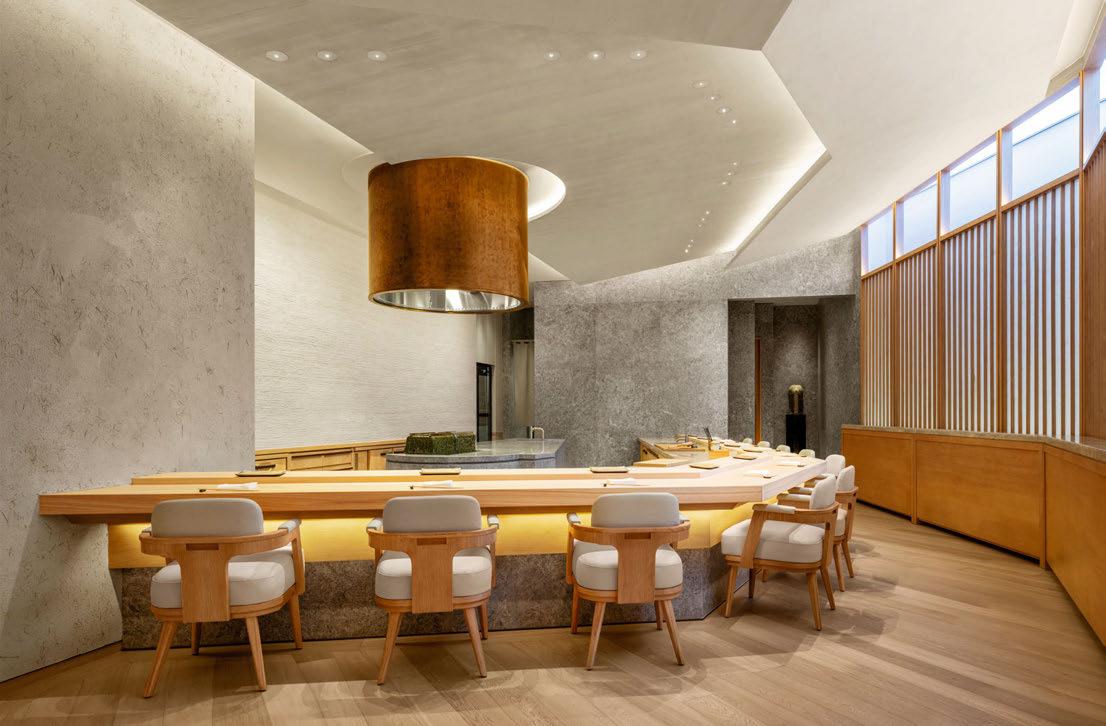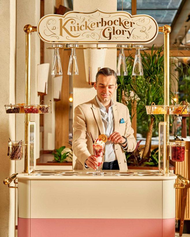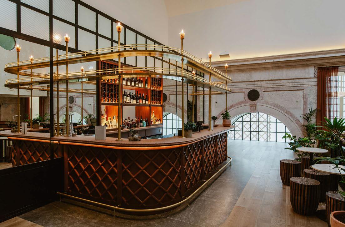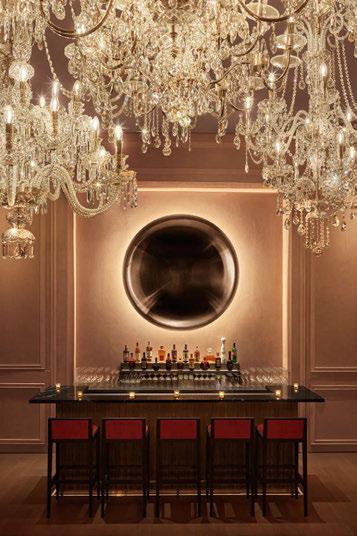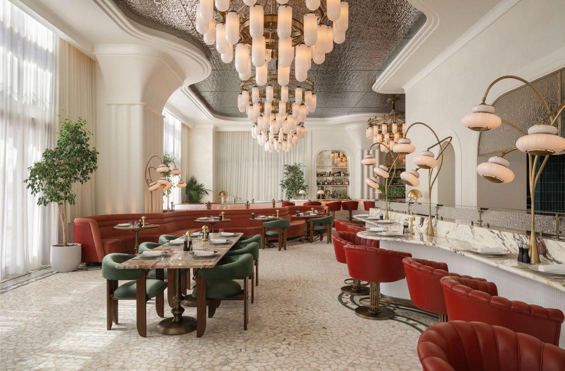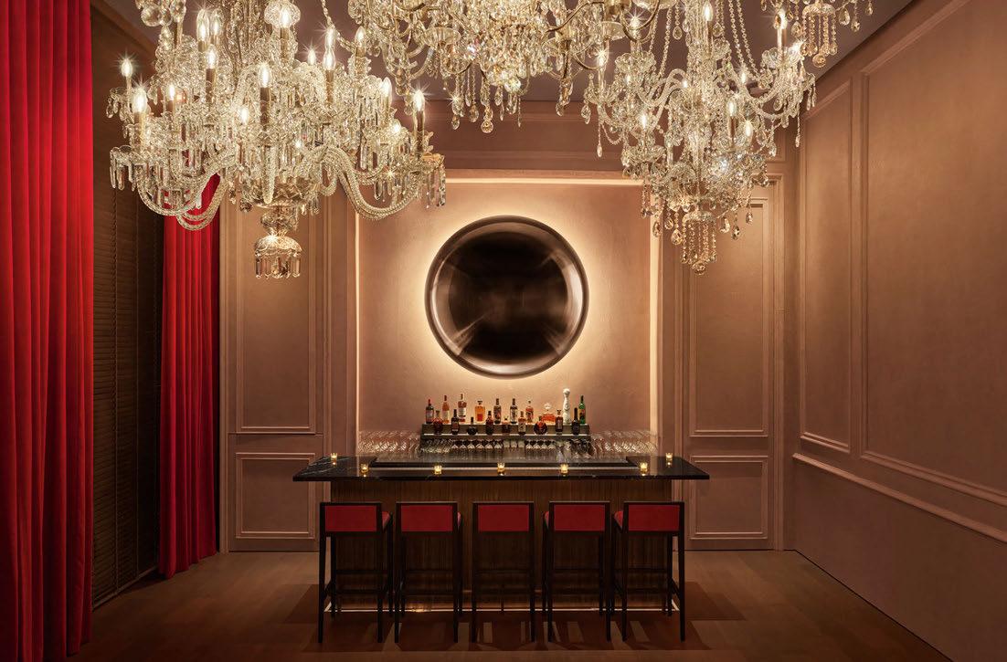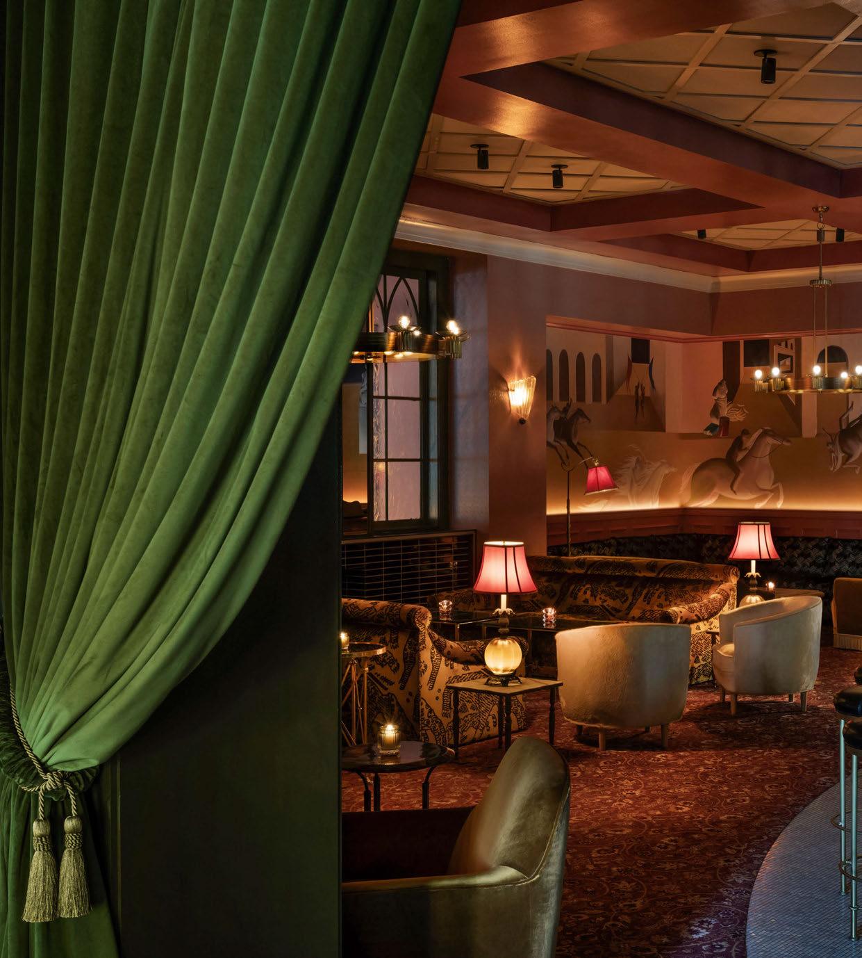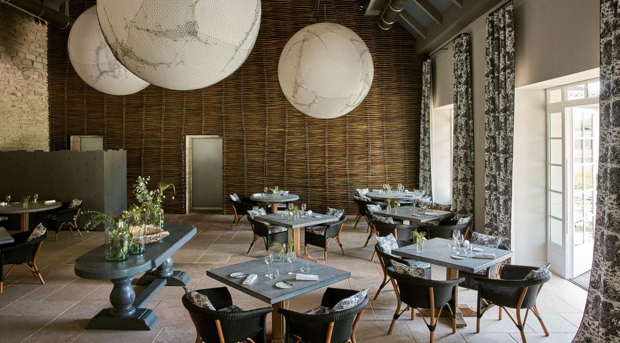 house façade with portico terrace, putting greens surrounded by landscaped gardens and LED hotair balloons that seemingly float up above. The restaurants and bars meanwhile are adorned with woodland wallcoverings and whimsical beehivestyle lighting, reinforcing the outdoors nature of the game.