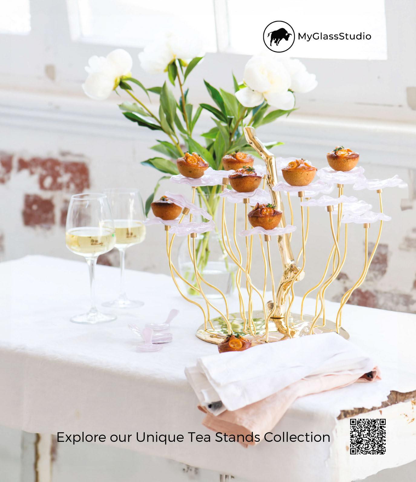 Crystalline structures take centre stage in winter 2024, with glass and metal intertwining to create a sparkling, silvery palette. Tables are transformed by intricate cut-glass patterns, reflective surfaces and geometric motifs etched into china. Multi-dimensional designs add depth, as Dior demonstrates with delicate, detailed plates, while glassware from Arc and Degrenne shimmers in the spotlight. www.franceclat-international.com