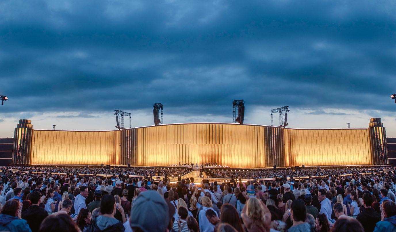 When performers put on an anniversary hometown show to celebrate a notable milestone, you often see them head back to a small venue in which they got their start. However, when Andrea Bocelli looked to celebrate his 30th anniversary of his career, he turned the ‘hometown show’ on its head –instead, opting to create a stunning temporary venue in the hills of Tuscany not too far from his local village. STUFISH Entertainment Architects designed the stage, debuting a large kinetic art sculpture, encapsulating the themes of time, place, and Bocelli’s personal and musical journey. The three nights of performances also welcomed a star-studded ensemble including Shania Twain, Ed Sheeran, Brian May, Zucchero, Johnny Depp, and Russell Crowe, as well as the biggest names in classical such as Plácido Domingo and José Carreras. Alongside guests, 58 musicians from the orchestra, four house band members and a 40-piece choir featured on stage.
