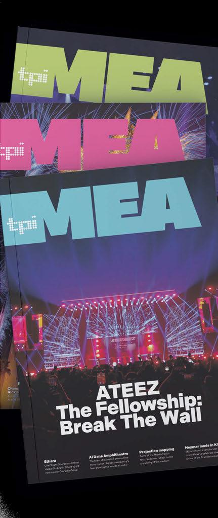 Elsewhere in the issue, we speak to some of the region’s leading experts in projection mapping to find out why the medium is so popular throughout the Middle East (page 64); we hear from Ethara Chief Event Operations Officer, Haidar Shukry, following the big news of a new joint venture with Oak View Group (page 8); I had the pleasure of catching up with the team behind Bahrain’s Al Dana Amphitheatre for an in-depth profile of the venue (page 46); and much more.