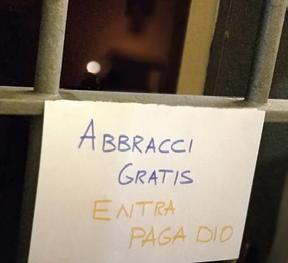 ragazza all’Eremo, un’iconista, e ho chiesto il suo aiuto per trasformare il quadro in icona. Siamo riusciti a organizzare un altro incontro con il Papa. Una gliela abbiamo regalata, l’altra ce l’ha benedetta e l’abbiamo riportata indietro. Adesso abbiamo una storia, un racconto, quando incontriamo le persone, un messaggio forte. Questa immagine vuole essere un abbraccio che raggiunge le persone in carcere. La presunzione buona di dire: se vieni da me quell’abbraccio lo trovi».