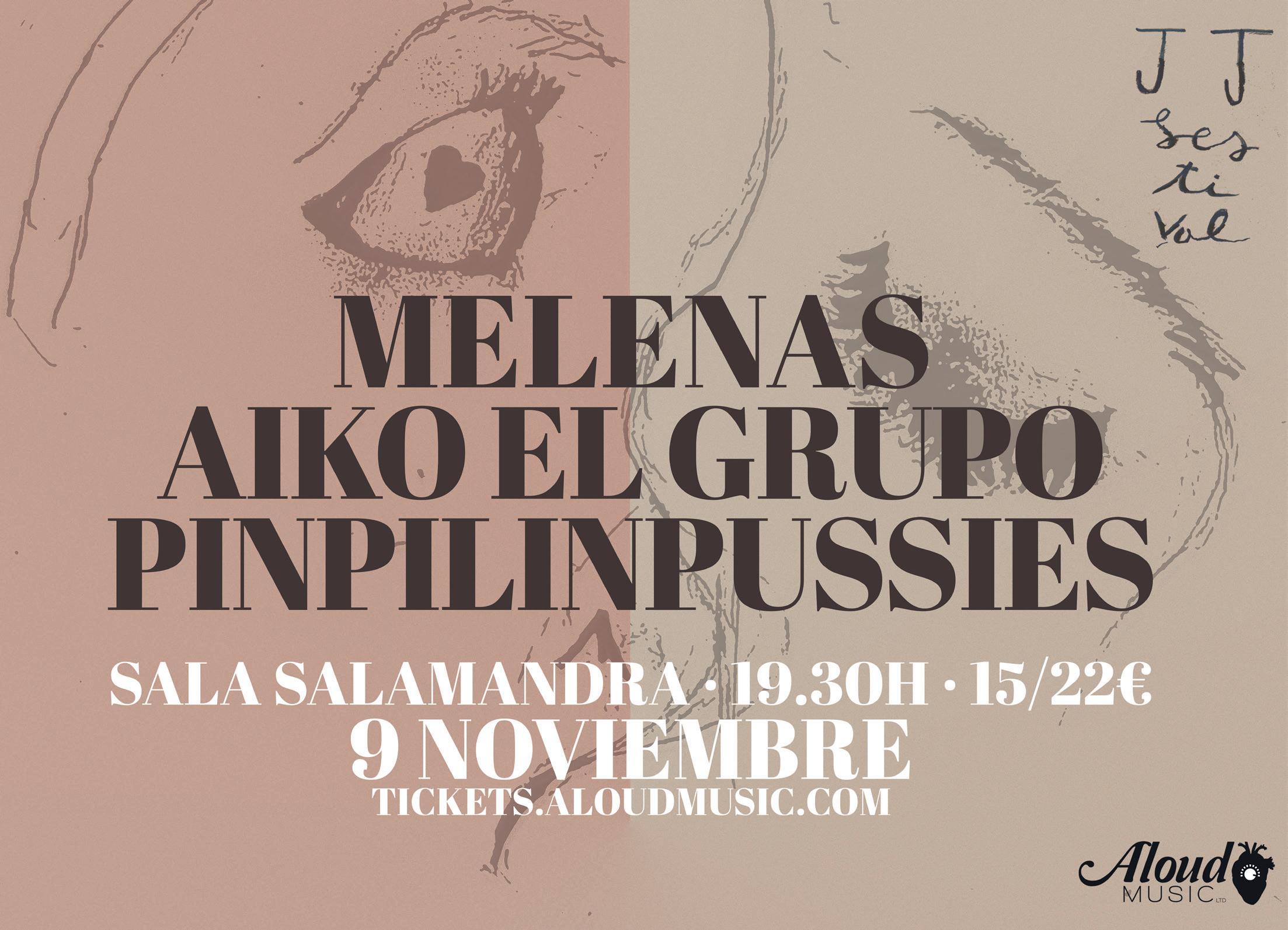 UN ALTRE FESTIVAL? Sí, però no un festival més, sinó un de diferent. La raó és que el cartell del JJ Festival ha estat triat –i dissenyat–per Jazmín, filla de Sergio Aloud, responsable del segell Aloud Records i de l’AMFest. Després diran que tots els nens i nenes escolten el mateix i que només segueixen les modes del moment. Jazmín, de dotze anys, ha seleccionat a Melenas, Aiko el Grupo i Pinpilinpussies perquè actuïn al seu festival el dissabte 9 de novembre a la Salamandra de L’Hospitalet (Barcelona). També ha dissenyat el cartell, ja que es tracta d’una jornada molt especial, pel fet que és el dia del seu aniversari. Ah, i si et preguntes per la segona “J” del nom, es refereix a Junior, germà petit de la Jazmín. MS www.tickets.aloudmusic.com