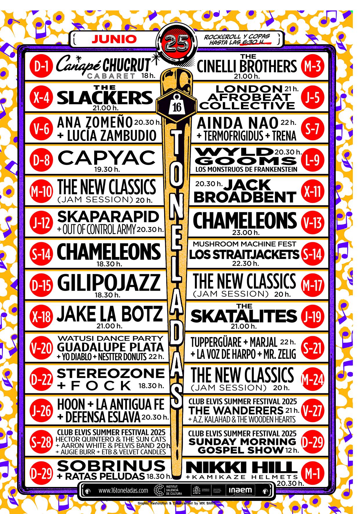 La Marina Norte de València albergará el ciclo de conciertos Nits Voramar, que dará comienzo el viernes 20 con Orishas y su Represent Cuba Tour, seguirá el sábado 21 con la electrónica en Mar Electronic, el viernes 27 será el turno del hard groove, hard techno y acid techno en el Basto, festival montado por la discoteca Spook, el sábado 28 Jesus and Mary Chain celebrando más de 40 años de carrera, y Humanians, y cerrarán el ciclo Wilco y Luis Prado el domingo 29. MS