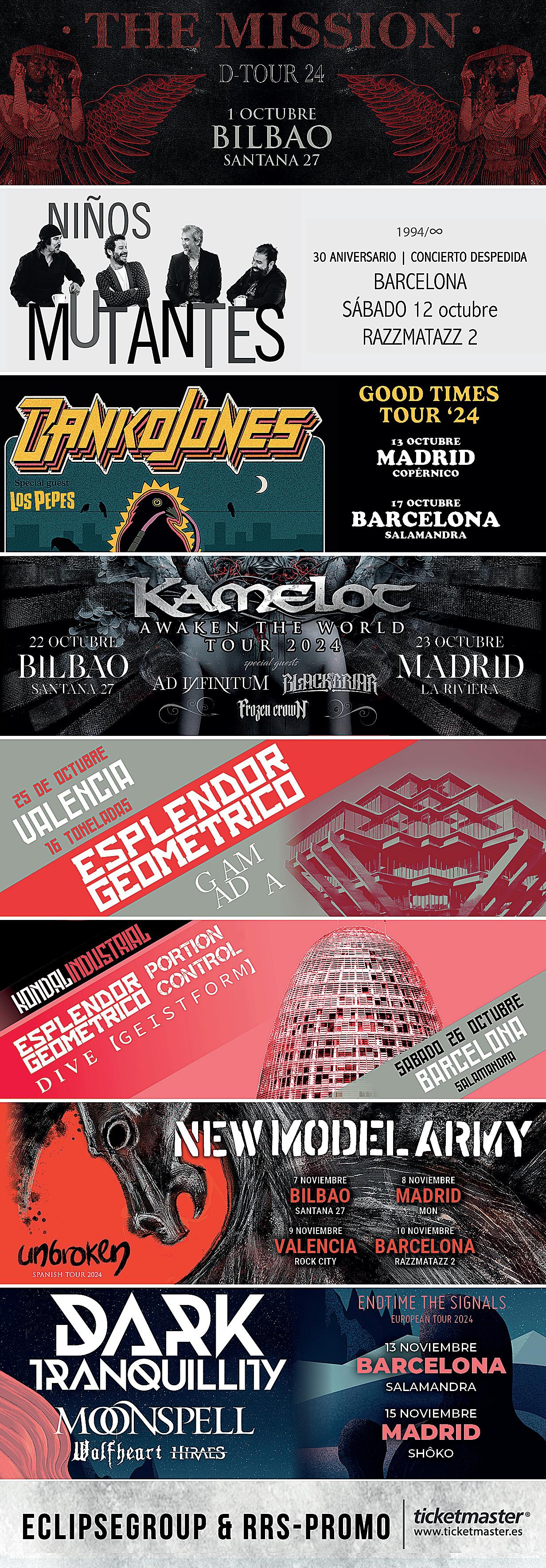 l Menorca 27 de septiembre. Cranc Festival l Barcelona 16 de enero. Sala Apolo l Valencia 18 de enero. Sala Jerusalem l Madrid 24 de enero. Teatro Barceló