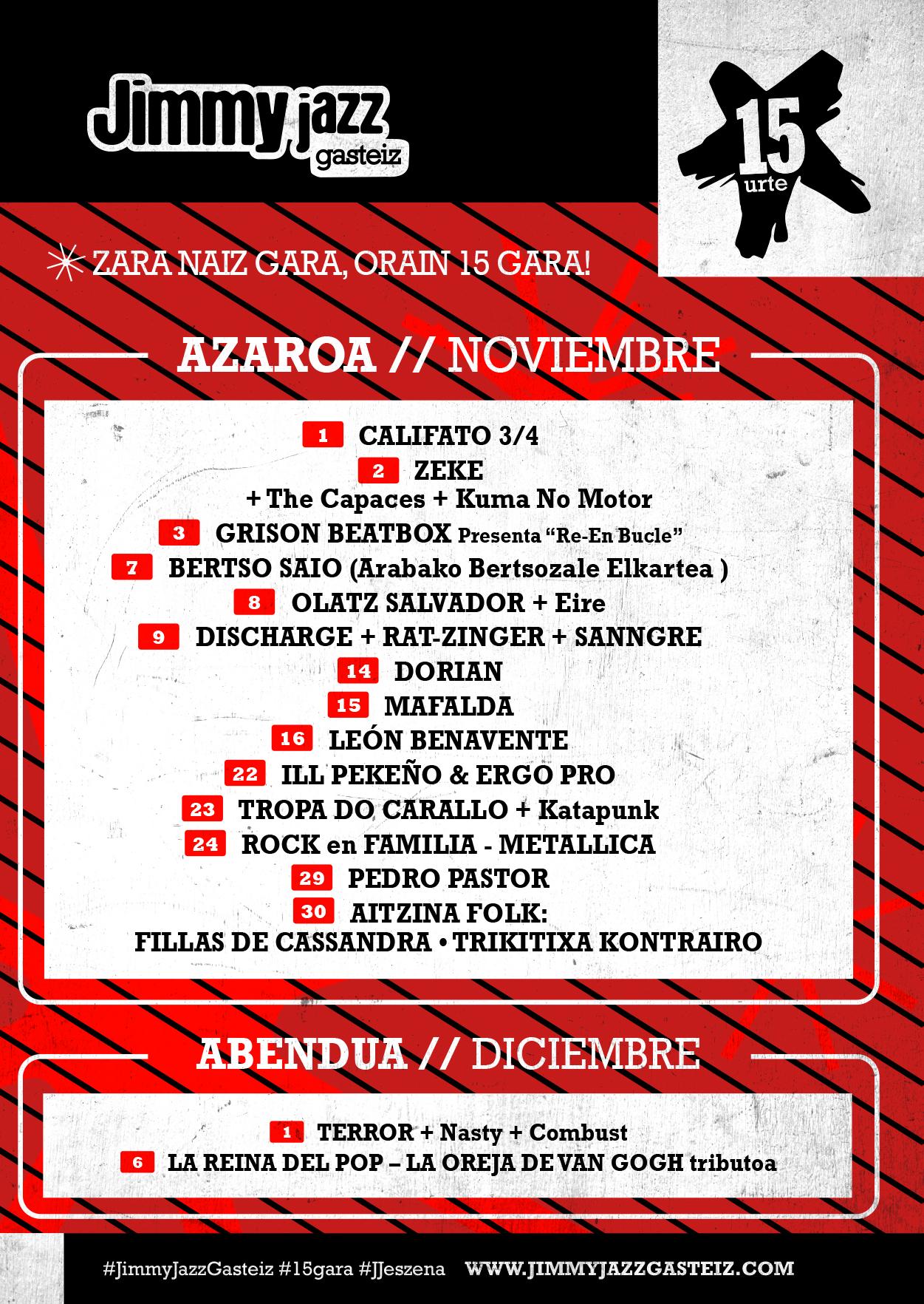 en la sala Zentral y Txintxarri respectivamente. El primer día actuarán Dorian y Los Jaguares de la Bahía, y el segundo 107 Faunos y Fría Jane. Ya en navidades, entre el 25 de diciembre y el 5 de enero, por la sala Zentral principalmente, pasarán grupos como Chill Mafia, Melenas, Juárez, Marte Lasarte, Alcalá Norte, Los Planetas, Al Safir, Albert Pla and The Surprise Band, Cralangas & Nudozurdo. Una potente programación musical que se completará con exposiciones, talleres y conferencias en Civican. MS
