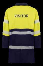 Metallfri og inherent flammehemmende frakk i synbarhet med ”VISITOR” brodert på ryggen. Rygglengde i str L=102 cm. PFAS-fri.