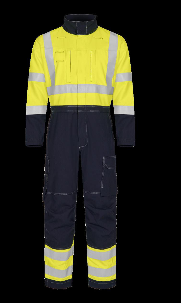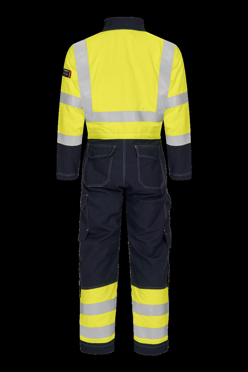 Metallfreier, inhärent flammhemmender, gefütterter HI-VIS Overall. Schutz gegen Lichtbögen, zertifiziert nach EN 61482-2 APC 2. PFAS-frei¹.