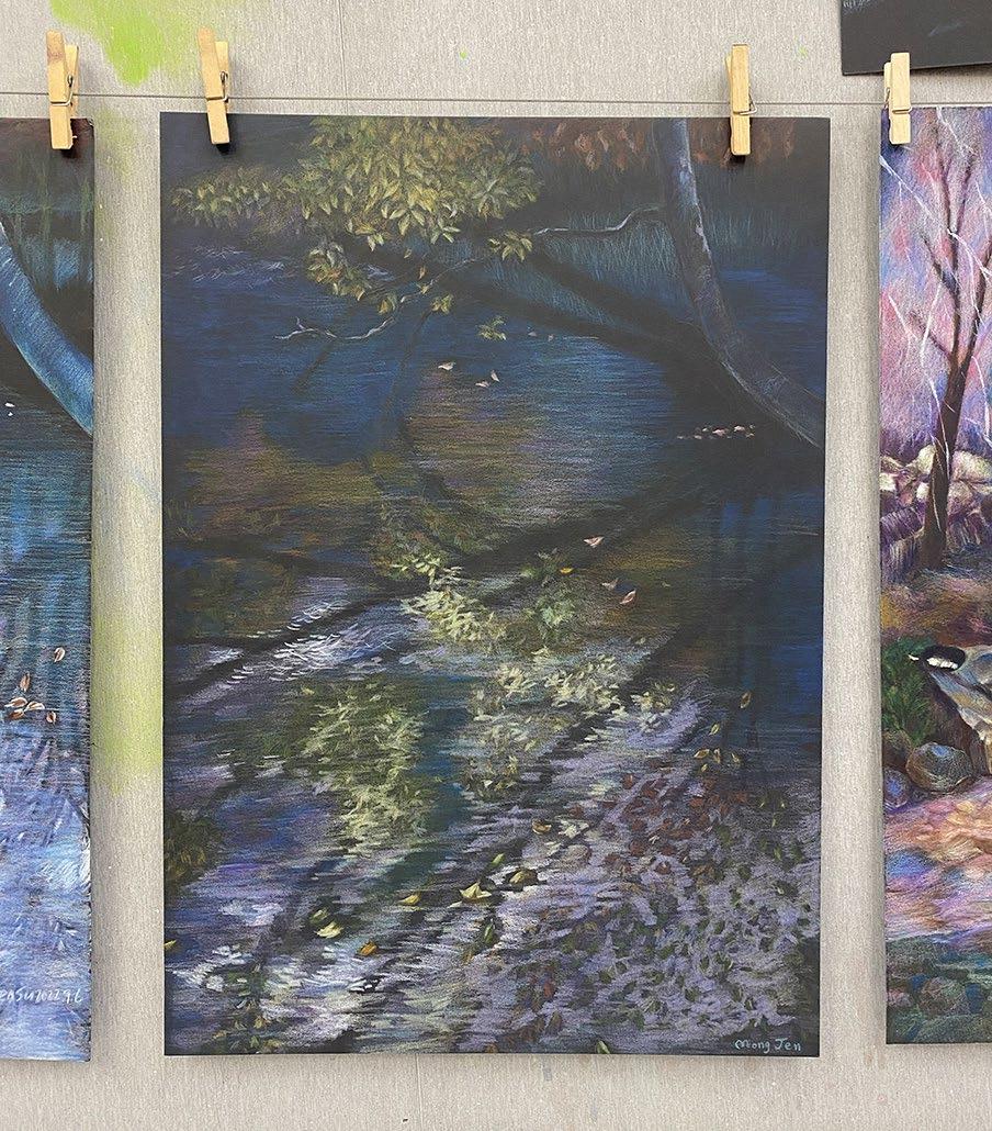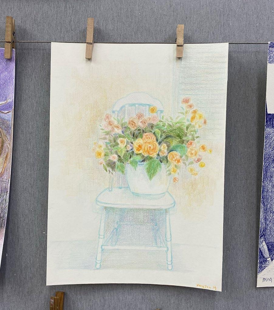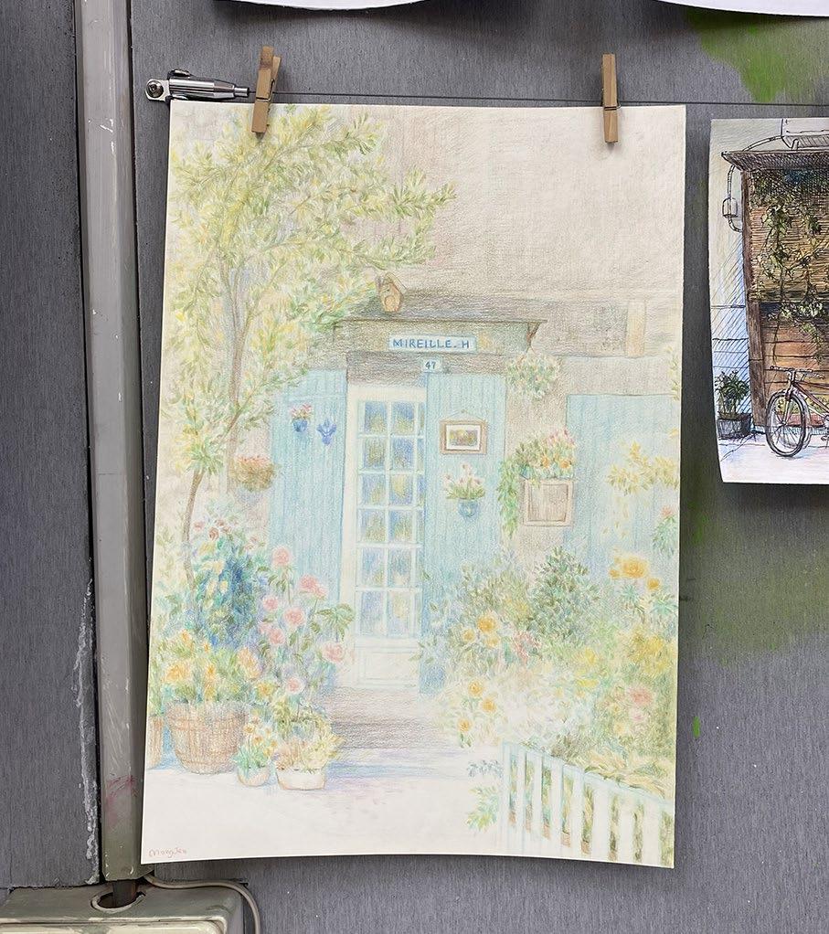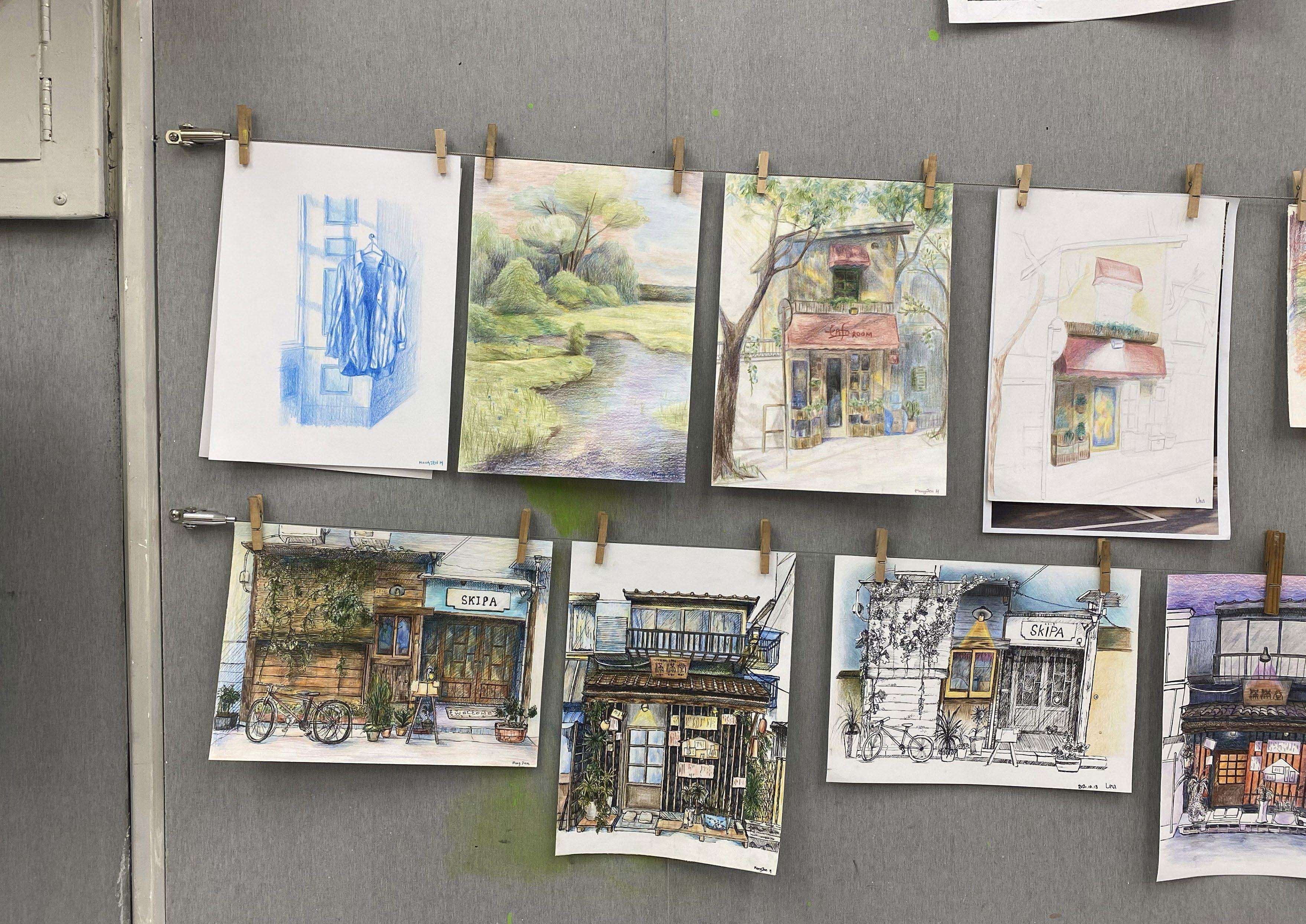 works wall the first, second, and third work in the first row the first and second work in the second row