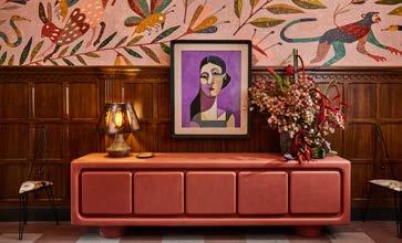 El Downtown LA Proper de Kelly Wearstler manifiesta una fusión de humor y energía festiva en un edificio histórico del Renacimiento del Renacimiento de California. La vitalidad resuena con influencias globales - modernismo mexicano con una infusión de elementos de diseño franceses, portugueses, españoles y marroquíes.