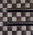 En el comedor principal de Villon, la barra personalizada de mármol Negro Marquina y nogal domina la sala con su imponente biblioteca de licores decorada en latón. El motivo azul y negro de la habitación está acentuado por madera, piedra, metales y vidrio en una escala delicada.