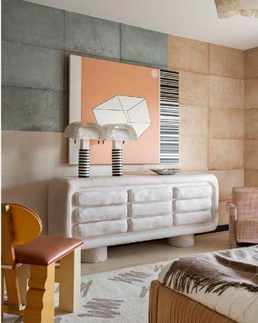 Las obras de arte dinámicas de Memphis, incluidos los antiguos Ettore Sottsass y Gary Knox Bennett, y las comisiones contemporáneas se incorporan cuidadosamente en cada habitación.