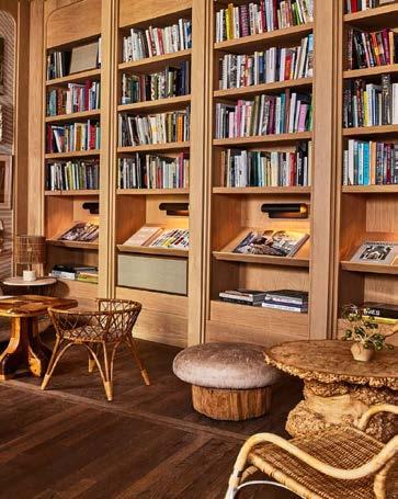The Grotto at Santa Monica Proper es una biblioteca y galería de arte estilo cala. Es evocador de un espacio íntimo y personalizado que replicaría lo que podría encontrar en una residencia junto a la playa de larga vida. Todo el mobiliario, los textiles, los materiales y el arte fueron seleccionados a mano y cuidadosamente considerados temáticamente, dando al espacio tanta alma.