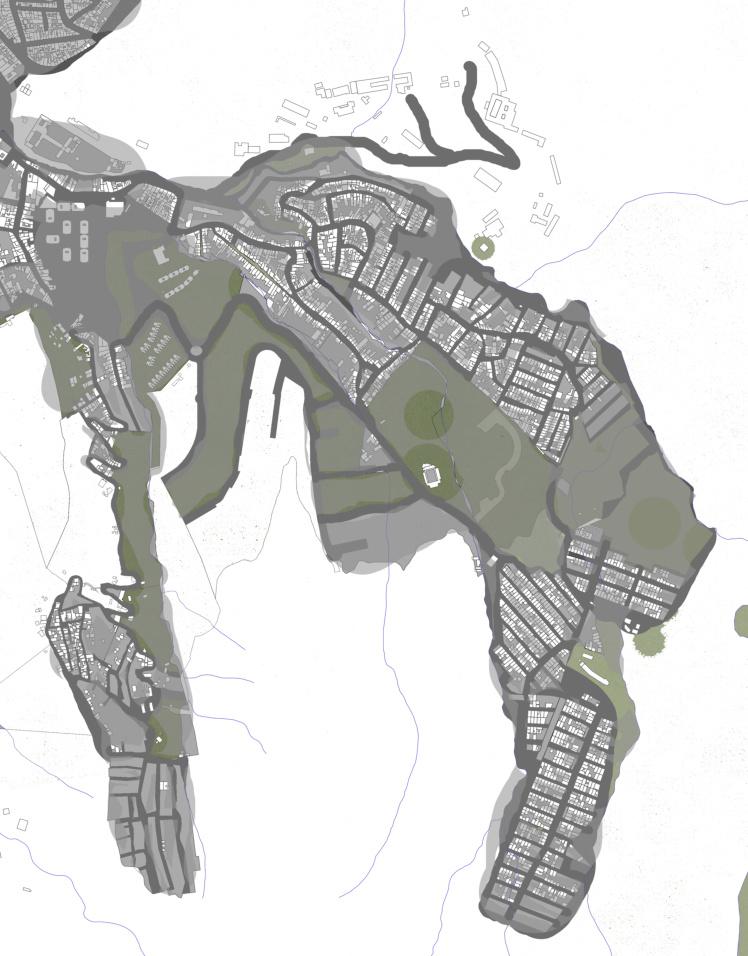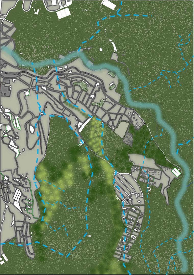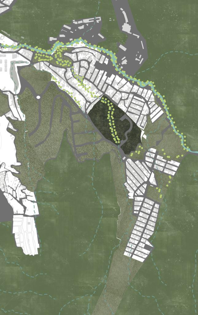 "Lamatrizserefiereala estructuradelamancha urbana,queabarcasololas edificaciones.Aunque inicialmenteincluíaáreas rurales,lacomunidadha integradotantoestos espaciosqueseha establecidounarelación sostenibleentreel ecosistemaylapoblación. Estohapermitidomitigar elimpactoambientaly promoverlareforestación delaszonasocupadas