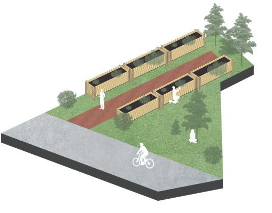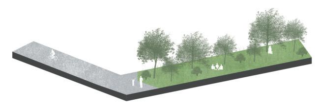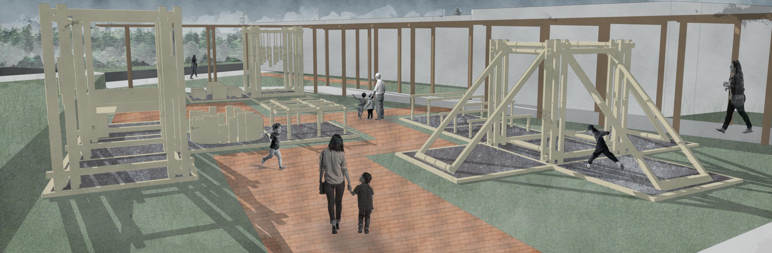 Para el diseño del parque se integraron diversas áreas que incluyen areas de juegos infantiles, zonas de descanso, espacios para reuniones, áreas contemplativas y verdes de transición. Estos espacios están diseñados para ofrecer actividades diversas para diferentes tipos de usuario, y se complementan con los módulos flexibles, que aportan funcionalidad a las actividades que allí se desarrollan.