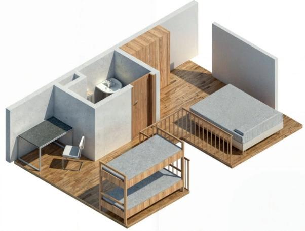MODULO DE DESCANSO CON POSIBILIDAD DE BICIPARQUEADERO