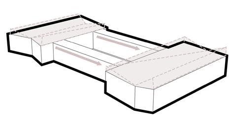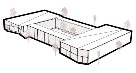 The paths form an inner courtyard, enhancing light and interaction.