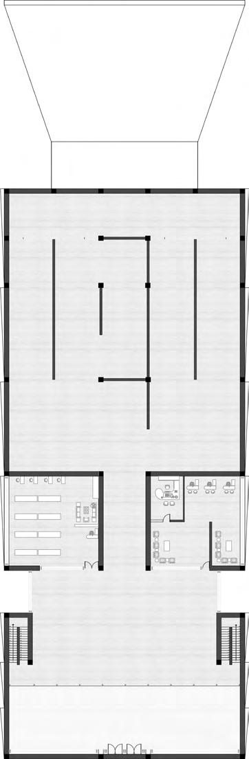 The layout began with a structural grid framework, optimizing circulation through strategic subtractions that create fluid movement across the building.