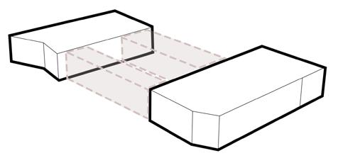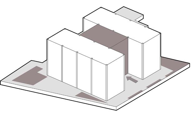 Circulation paths connect both volumes, creating a cohesive layout