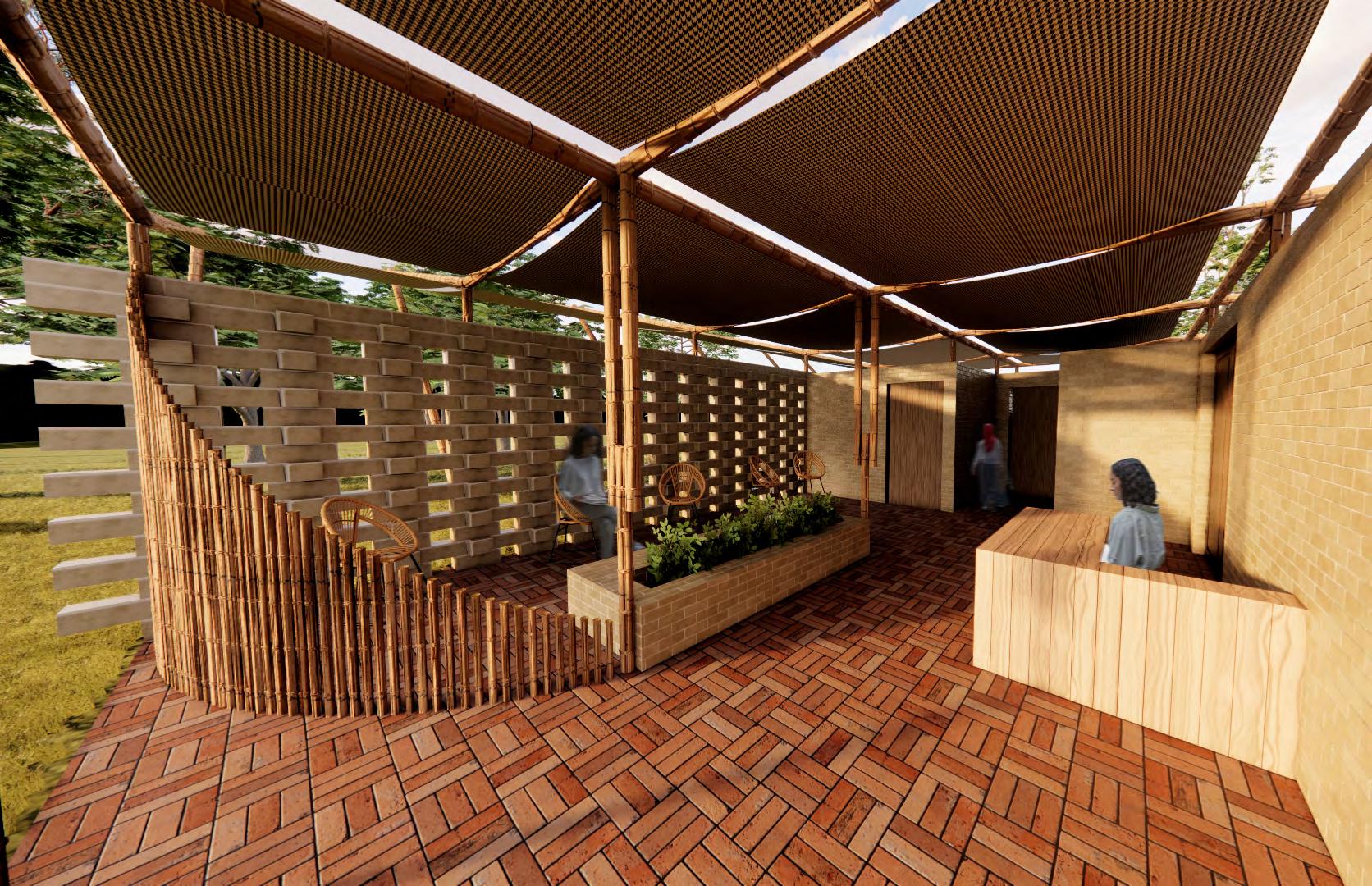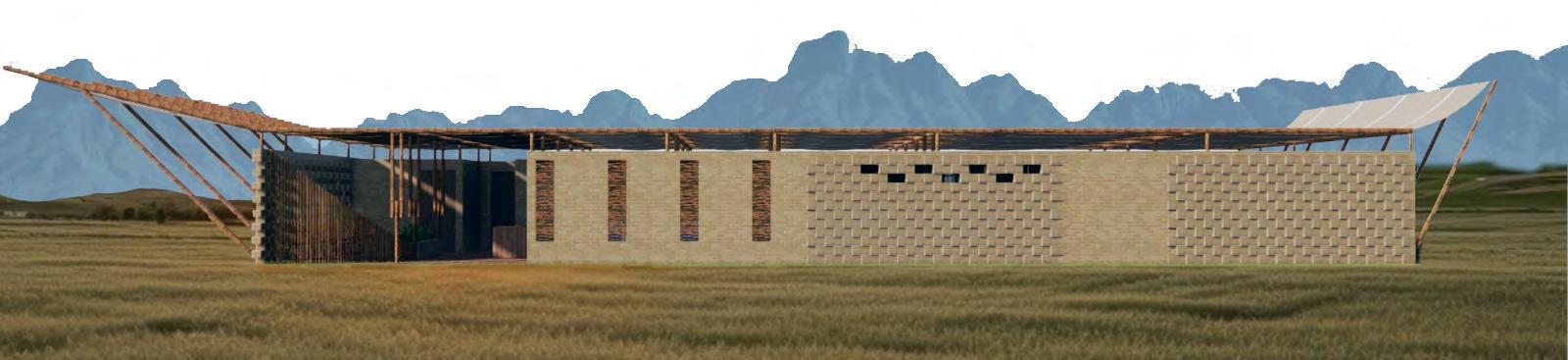 The project is designed for self-construction by the local community. The walls are collaboratively built using locally produced earth bricks and mud mortar for binding, with lashing techniques that incorporate natural fibers to assemble the bamboo framework. Senegalese fabric is added as a breathable layer for water resistance.