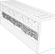 Integration of a protective barrier, outdoor rest areas and recreational spaces.