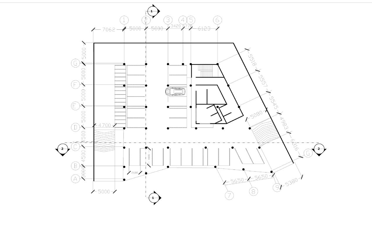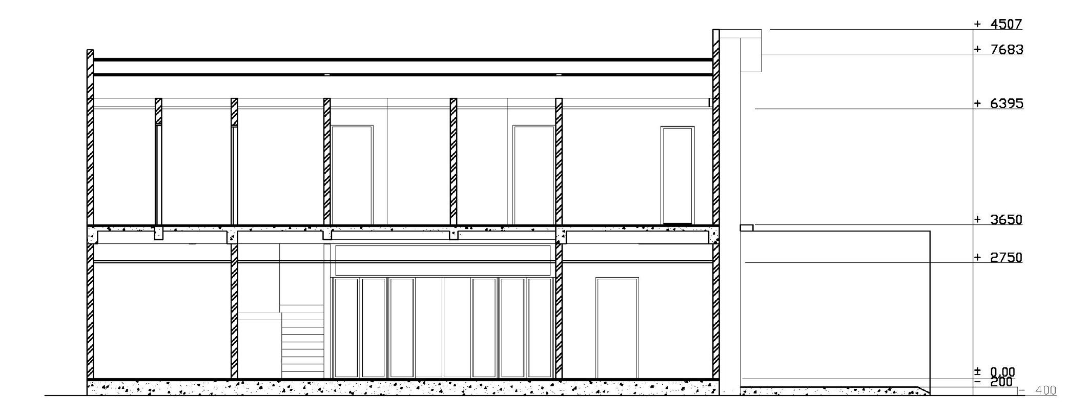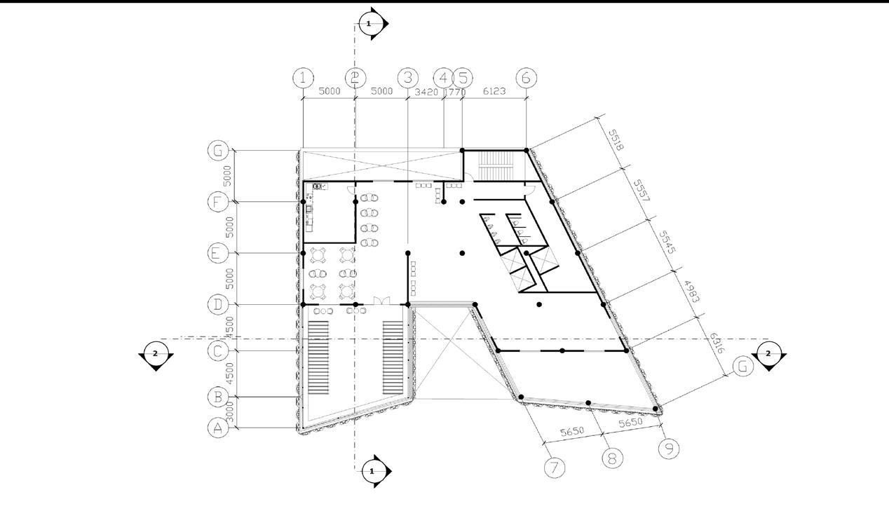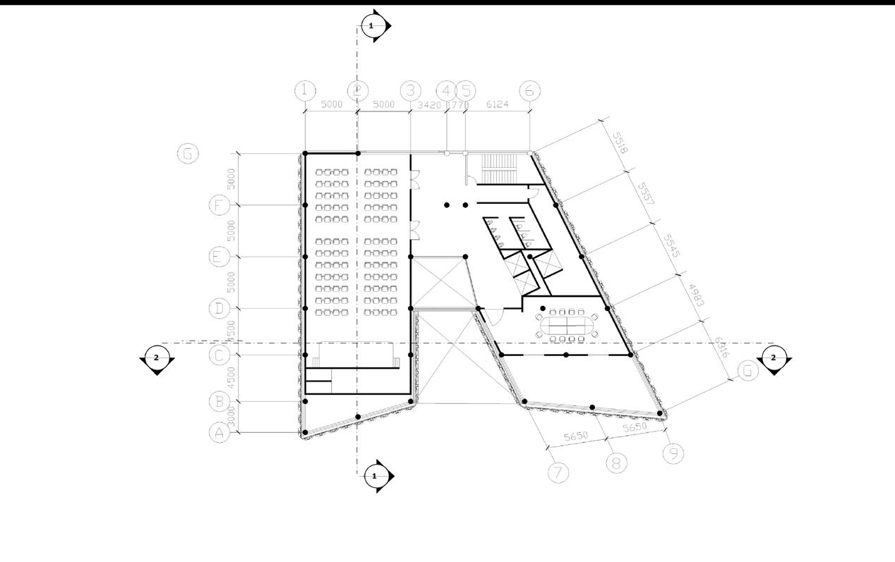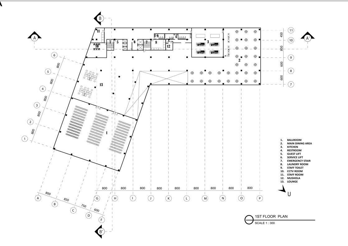 Tambi Gallery | 3rd Semester | 2022 OFFICE 1.OFFICE ROOM PUBLIC AREAS 2. CHANGING EXHIBITION 3. LOUNGE 4. CAFE 5. LOBBY 6. OUTDOOR FOYER 7. BACKYARD SERVICES 8. RESTROOM 9. PASSENGER LIFT 10. SERVICE LIFT 11. EMERGENCY STAIRS 12. STORAGE 1 2 3 4 5 6 8 9 10 11 12 KET: VEHICLE CIRCULATION Section 2-2 `Section 2-2 1 st Floor Plan 33