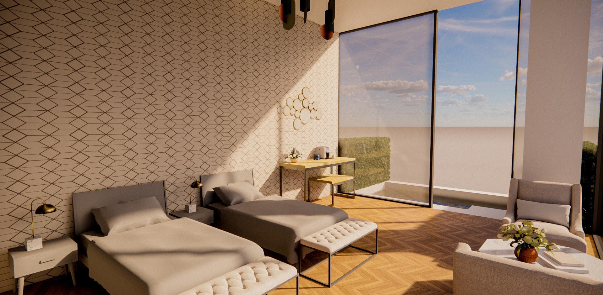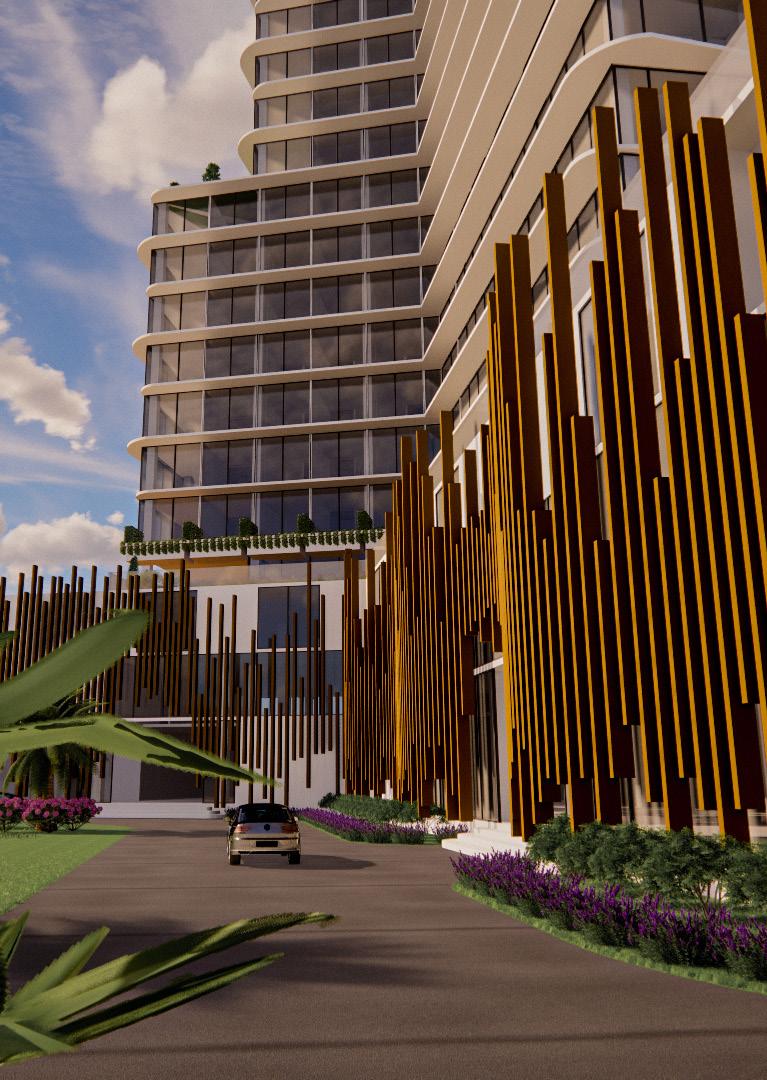 Hotel Resort located in Ancol, Jakarta. The word “Chalarí” or χαλαρή comes from the Greek which means ‘relax’. The concept of this hotel itself is intended for guests who want to just ‘relax’ to spend an exciting holiday even though they are still in the city of Jakarta. Located close to the water and in front of it having a direct view of the sea, the exterior concept of this hotel takes the philosophy of ocean waves which can be seen in the solar shading pattern and the wavy cantilever tower