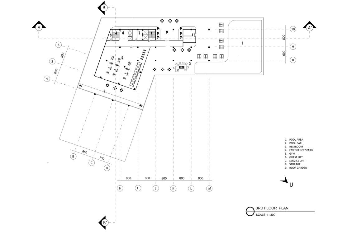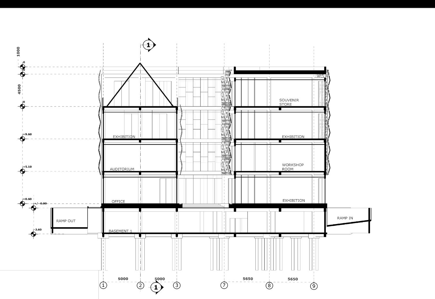 Tambi Gallery | 3rd Semester | 2022 1 2 3 4 5 6 7 8 9 10 CIRCULATION 1. VEHICLE IN 2. VEHICLE OUT SERVICES 3. CAR FOR CAR 4. PARKING FOR MOTORCYCLE 5. MEP ROOM 6. SECURITY ROOM 7. PASSENGER LIFT 8. SERVICE LIFT 9. LOADING DOCK 10. EMERGENCY STAIRS KETERANGAN: VEHICLE CIRCULATION PUBLIC AREAS 1. AUDITORIUM 2. BACKSTAGE 3. CHANGING ROOM 4. WORKSHOP ROOM SERVICES 5. RESTROOM 6. PASSENGER LIFT 7. SERVICE LIFT 8. EMERGENCY STAIRS 9. STORAGE 1 2 3 4 5 6 7 8 9 1 2 3 4 5 6 9 PUBLIC AREAS 1. PERMANENT EXHIBITION SERVICES 2. RESTROOM 3. PASSENGER LIFT 4. SERVICE LIFT 5. EMERGENCY STAIRS 6. STORAGE 1 1 2 3 4 5 6 7 8 9 PUBLIC AREAS 1. RESTAURANT 2. OUTDOOR SPACE 3. SOUVENIR STORE SERVICES 4. KITCHEN 5. RESTROOM 6. PASSENGER LIFT 7. SERVICE LIFT 8. EMERGENCY STAIRS 9. STORAGE Basement Plan 2 nd Floor Plan 3 rd Floor Plan 4 th Floor Plan 34