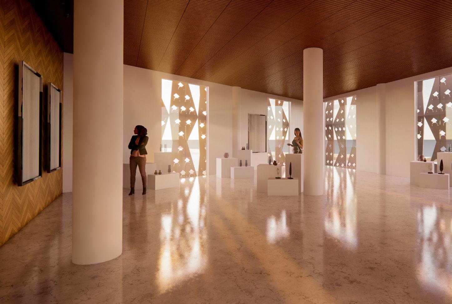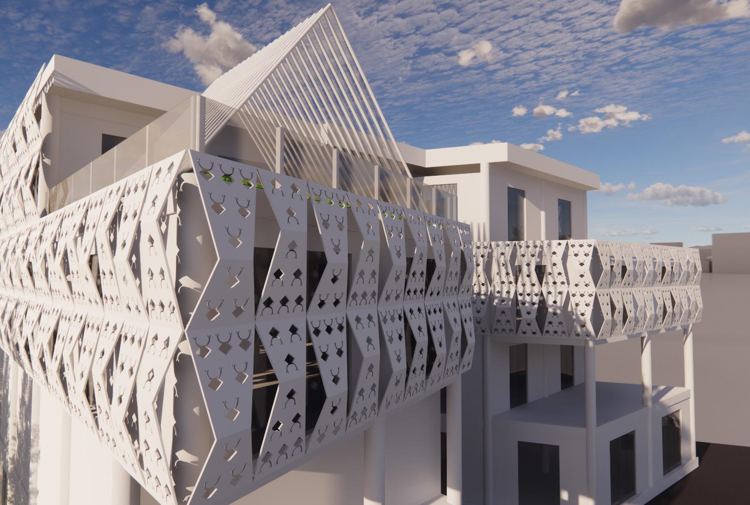 Tambi gallery is designed by adopting culture from the Lore tribe, the Tambi traditional house. By taking the element of decoration elements in the form of horns symbols which are used as a pattern of the secondary skin used. This Gallery Also has a Cultural Exhibition Room in according to the selected cultural product. In addition, this gallery also has art performance space, both indoors and outdoors. The gallery is also planned to have a workshop space that aims to train visitors about the skills possessed by the culture. Other facilities need are the cultural restaurant which shows local cuisine and also sales facilities that sell souvenirs and local handicrafts.