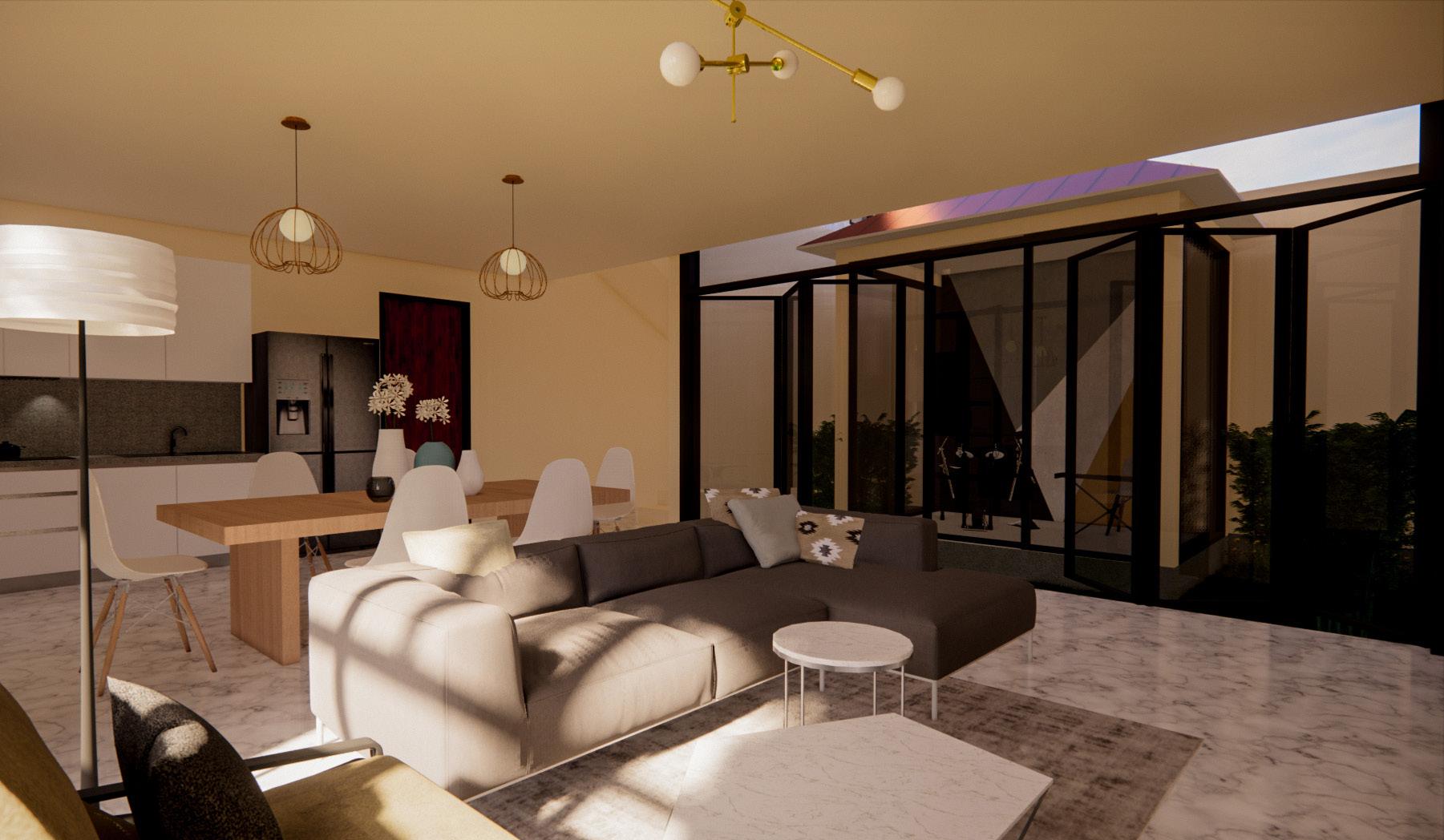 The house is designed in a tropical modern architectural style with the use of natural elements, such as wood and natural plants. PN House carries the concept of comfortable housing for families with separate private and semi-public zone settings, as well as a mass building that is open on the side for a inner courtyard and music room according to the client’s wishes. This house was also designed to respond to the conditions of the Covid-19 pandemic by having an inner courtyard area and lots of openings to ensure good air circulation in each room and provide an area that can be used for sunbathing.