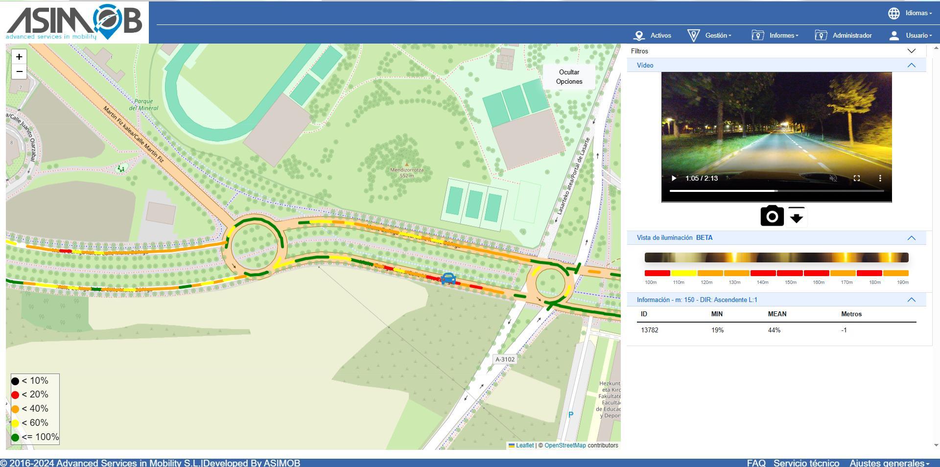 Detección, clasificación y análisis de visibilidad de marcas viales longitudinales, transversales y otras señales horizontales.
