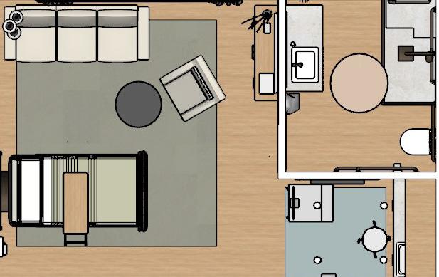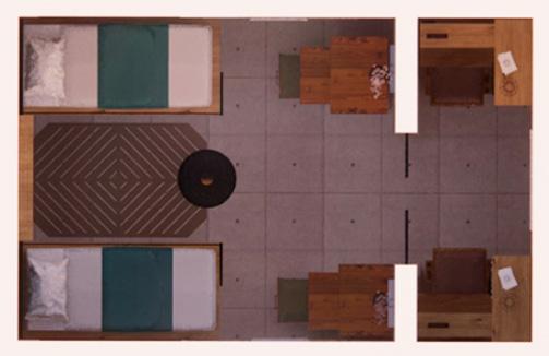 To honor the tradition of separation of space seen in South Korean culture, my team chose to alter the original floor plan. By moving the study area to the front of the dorm, providing opaque dividers, and including a built in closet under the bed, we effectively provided our client’s a space not only fit for fuction, but one honoring their customs.