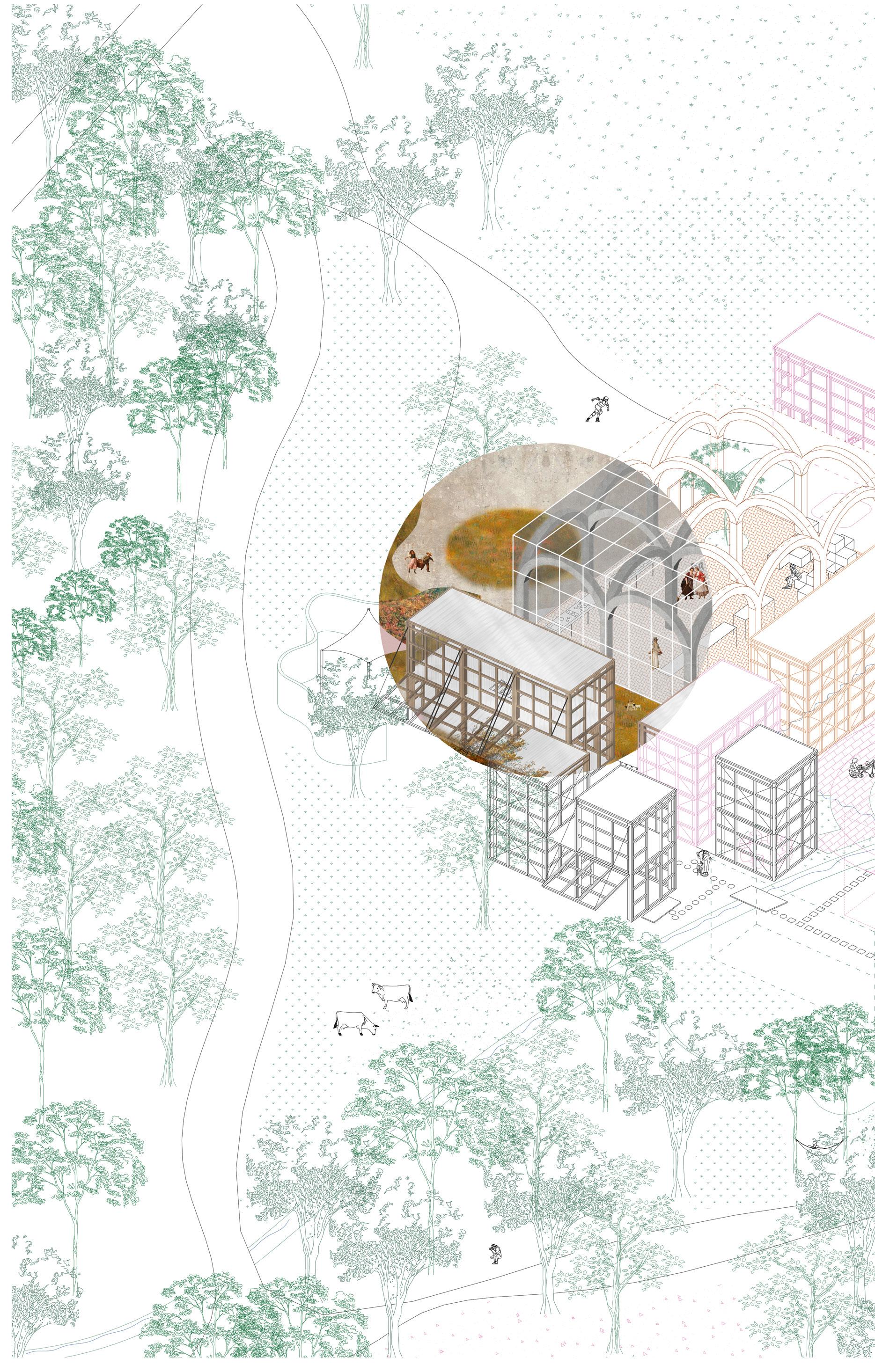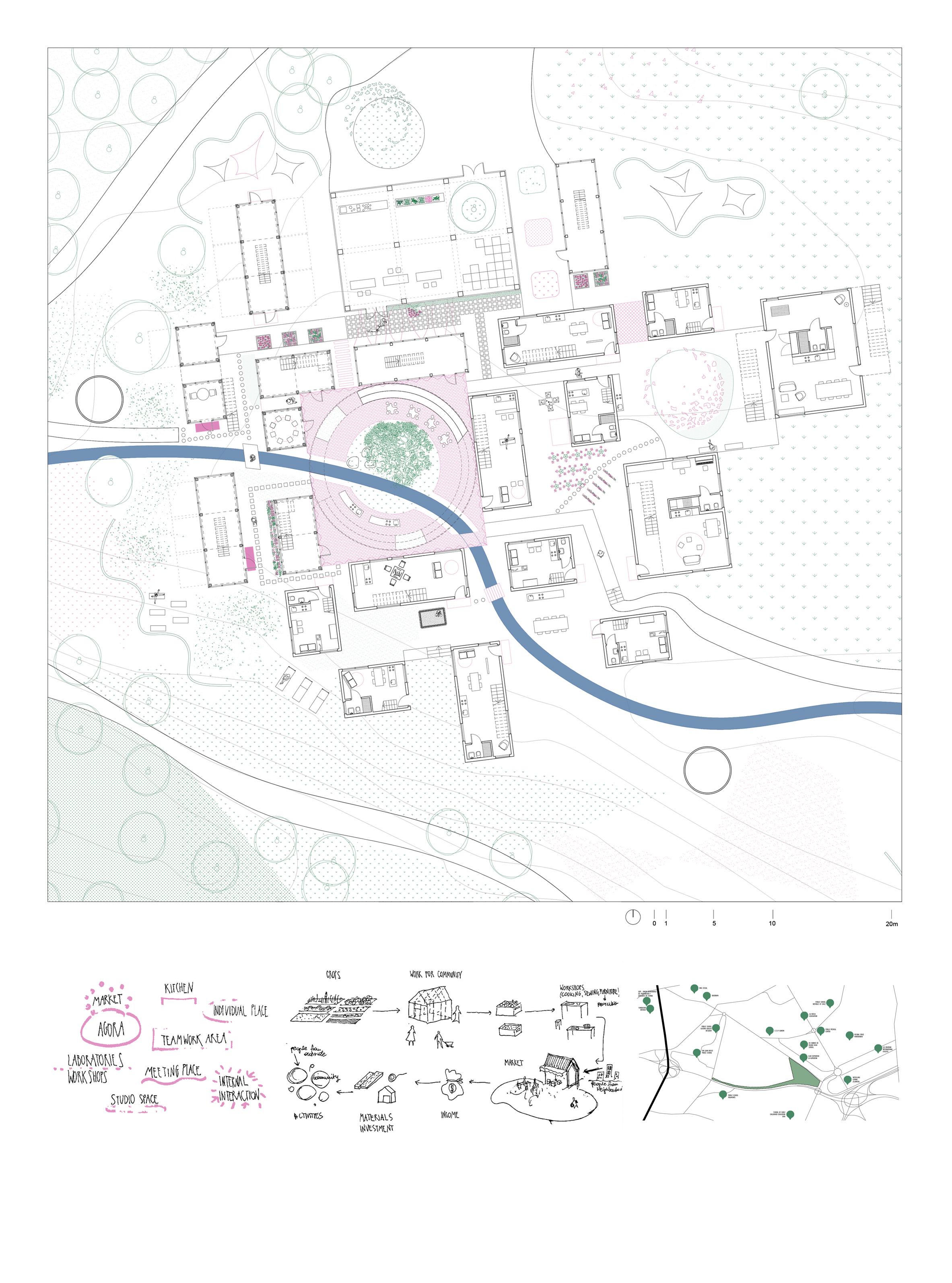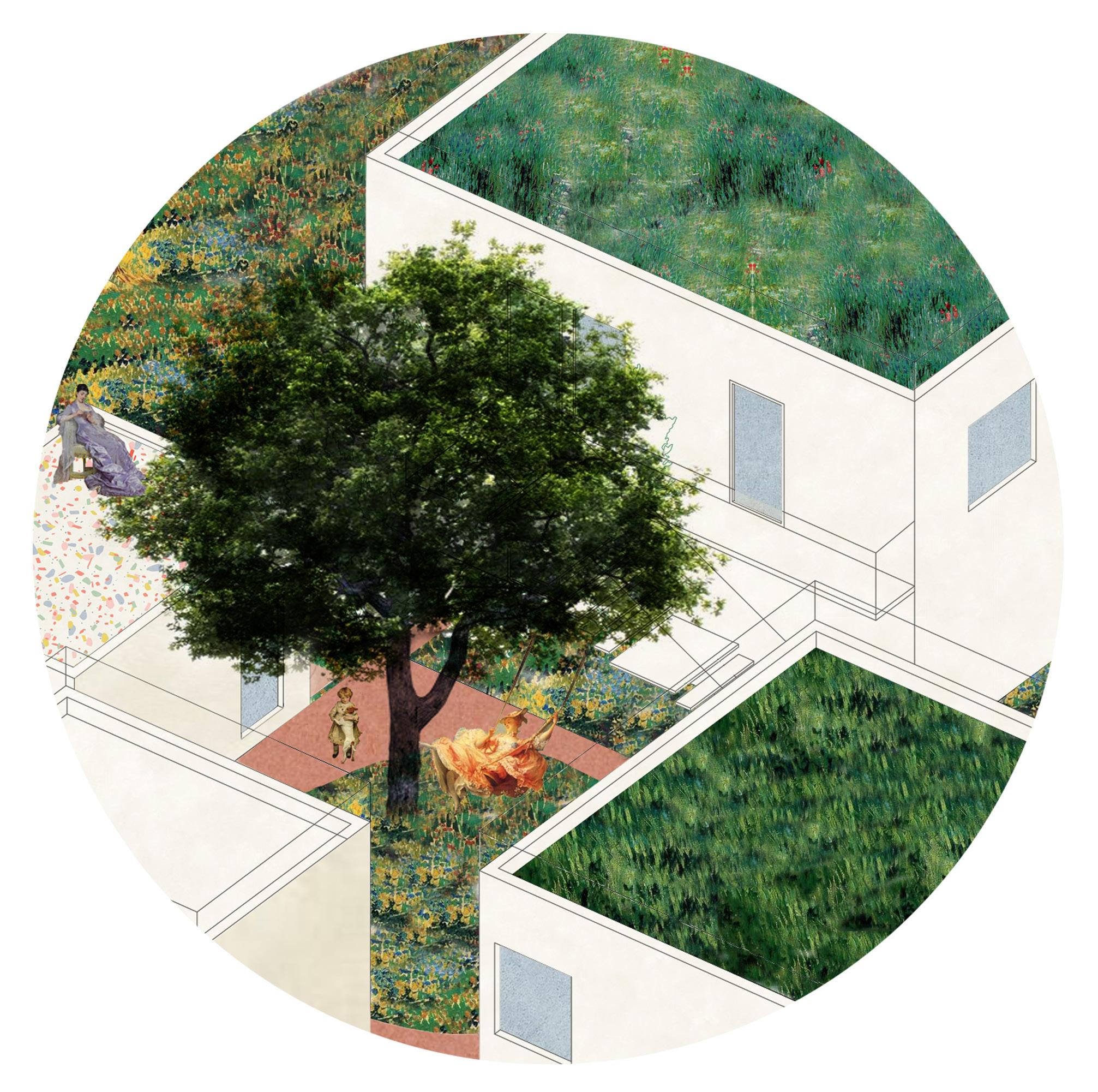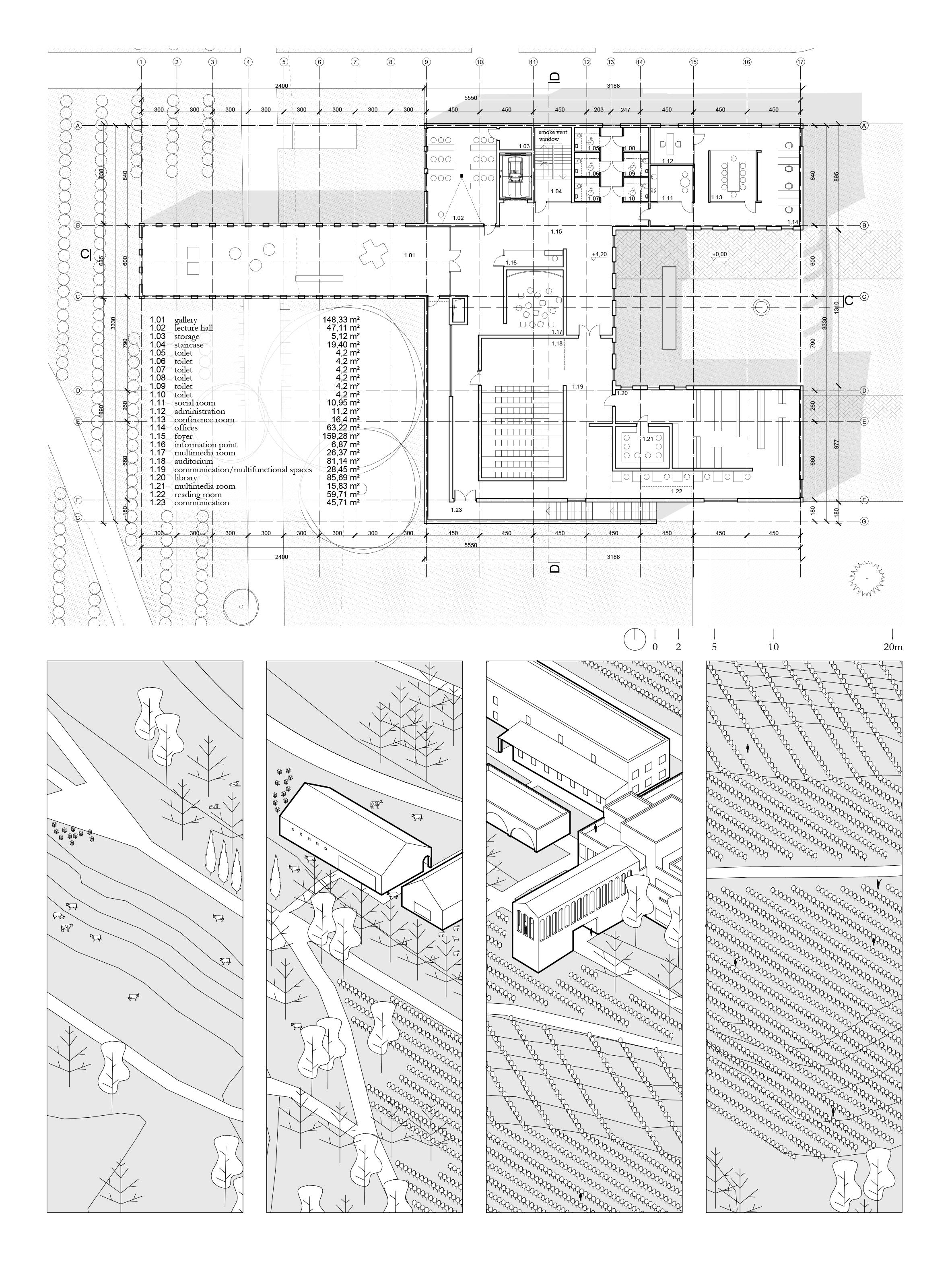 The project presents the concept of developing a park with a vineyard in Rome and a new building for the IT school Agrario Domizia Lucilla. The development area is the scene from the Italian film „Ugly, Dirty and Bad” from 1976 in the background of St. Peter’s Basilica. Every year, an increasing number of people move to cities. Often, the search for a better job and a better life means that we run somewhere, forgetting about our own health, as well as about realizing ourselves and listening to what our body tells us. In large cities, we are exposed to noise on every day basis, which is why it is so important to take care of parks and urban greenery. Green spaces are becoming the only springboard from concreted streets, high skyscrapers and crowds of strangers. Monte Ciocci Park and its vineyards can become a peaceful place for the citizens of Rome, where they will be able to realize themselves socially and individually, caring for their traditions. The building complex can serve not only the IT school Agrario Domizia Lucilla, but workshops and activities in this area can reach a larger audience, realizing the importance of taking care of nature. It is here, looking towards St. Peter’s Basilica, you can feel the real Italy and get inspired by the rural and urban idyll.