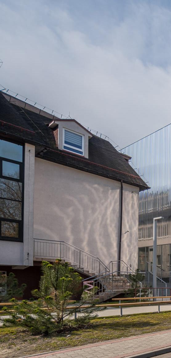 /Currently, in the spring-autumn period, about 5-10% of the employed staff commute to work by bicycle - the right infrastructure of the office building is the basis. Due to the increase in the number of these people, a ramp, bicycle racks and a connection with a pedestrian-bicycle route towards the main hall were designed.