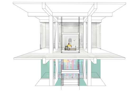 nástup a výstup z páternosteru prodejní plocha zachována nové jádro s platformami pro zásobování věže