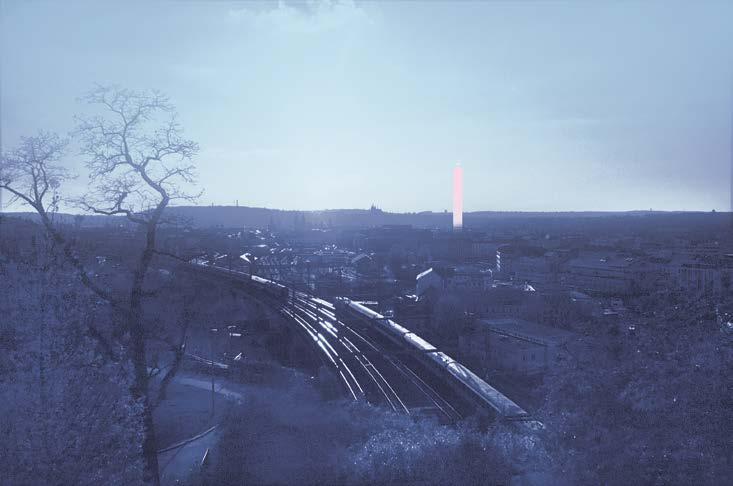 Využívám potenciál konstrukce a stavím do výšky. Na sérii modelů hledám ideální formu a výšku pro rozvinutí stávajícího soklu. Tak jako památková péče chrání výšku římsy jako nepřekročitelnou hranici, já stanovuji absolutní výšku Pražského hradu za limitní. Ideál nacházím ve 130 metrech. Tento prostor, tedy vše od římsy stávajícího obchodního domu po vrchol vyplňuji požitkem a zábavou, pro kterou bylo v době svého vzniku určeno. Svou výškou a náplní definuji nový pilíř na mapě Prahy. Přilévám energii tam, kde dnes chybí. Přidávám novou pohledovou dominantu do sbírky Prahy stověžaté.
