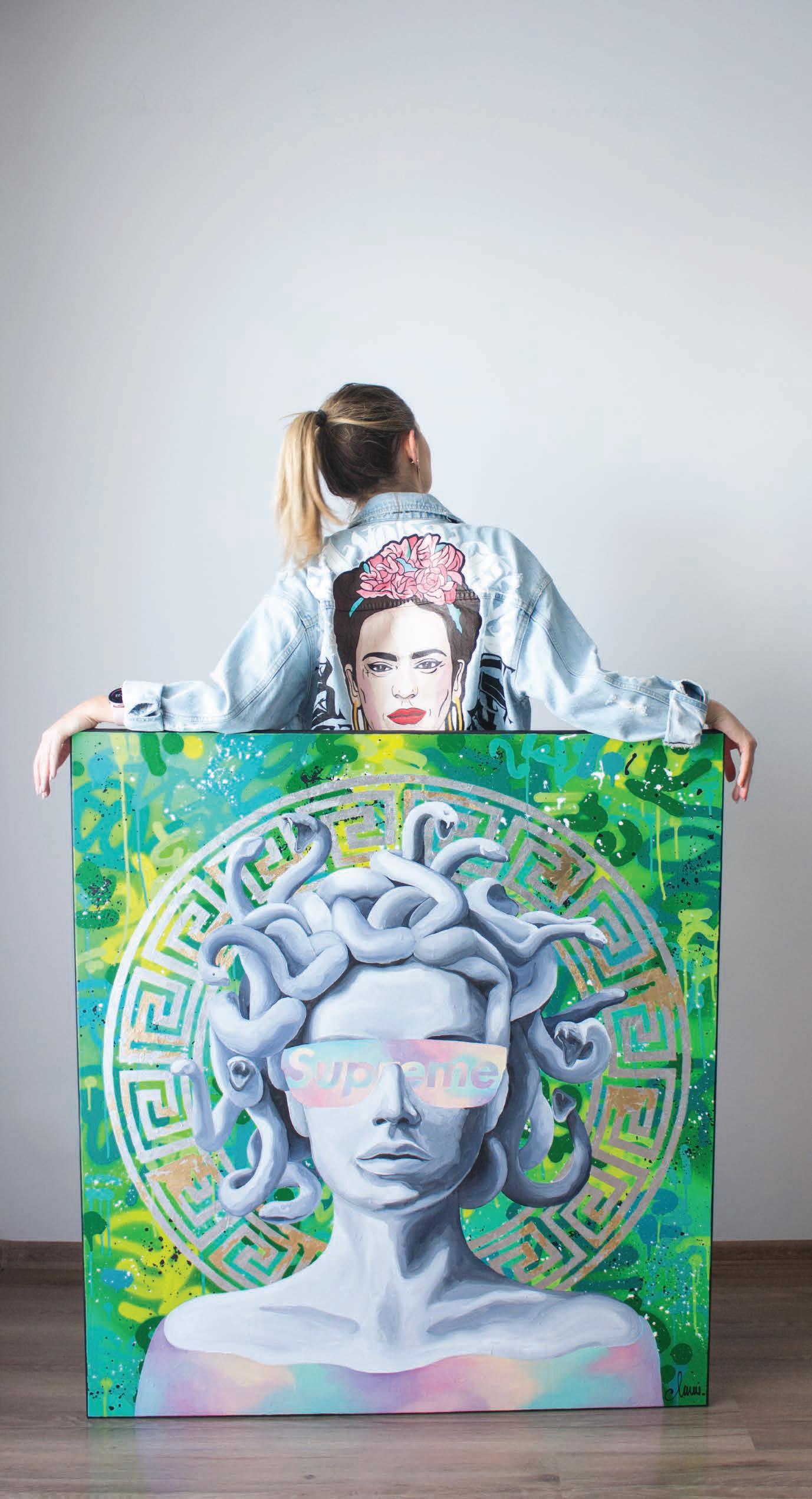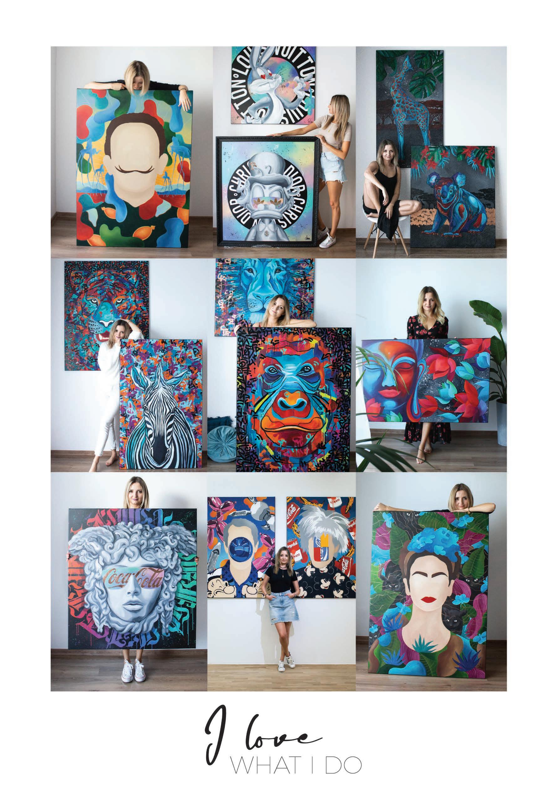 In my master's thesis, I describe Street Art, in which I find most of my inspiration. Since then, I have been creating a series of works inspired by Banksy, Shepard Fairey, and many more gra ti artists. Art gives me the opportunity to express myself and my emotions in a very ecstatic and colorful, crazy way. It also presents a surprising combination of traditional painting with the urban style.