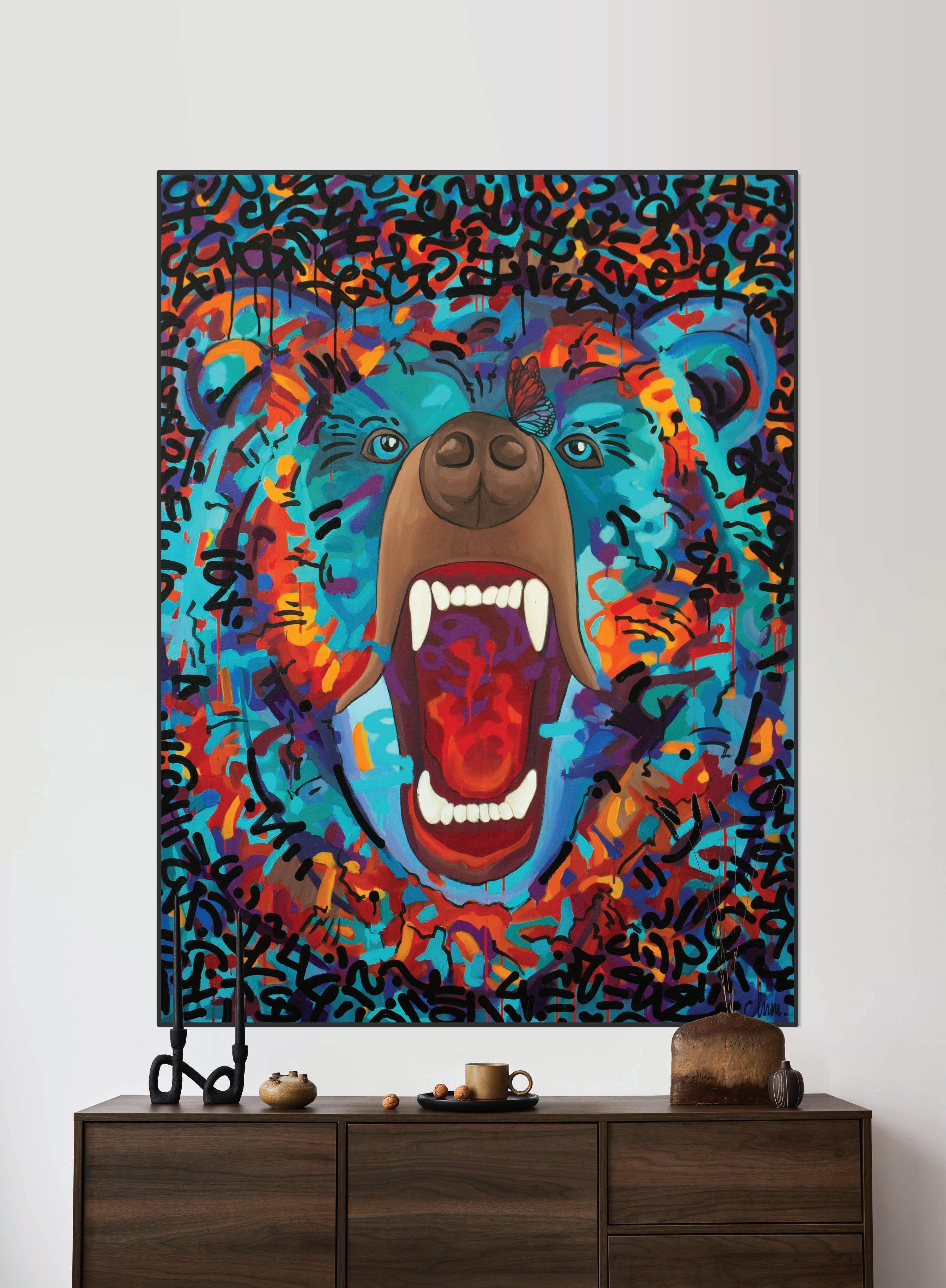 ‘SIMPLE WAY TO THE MADNESS OF A BEAR’ 2021. 130x100 cm. Acrylic paint and gra ti on canvas.