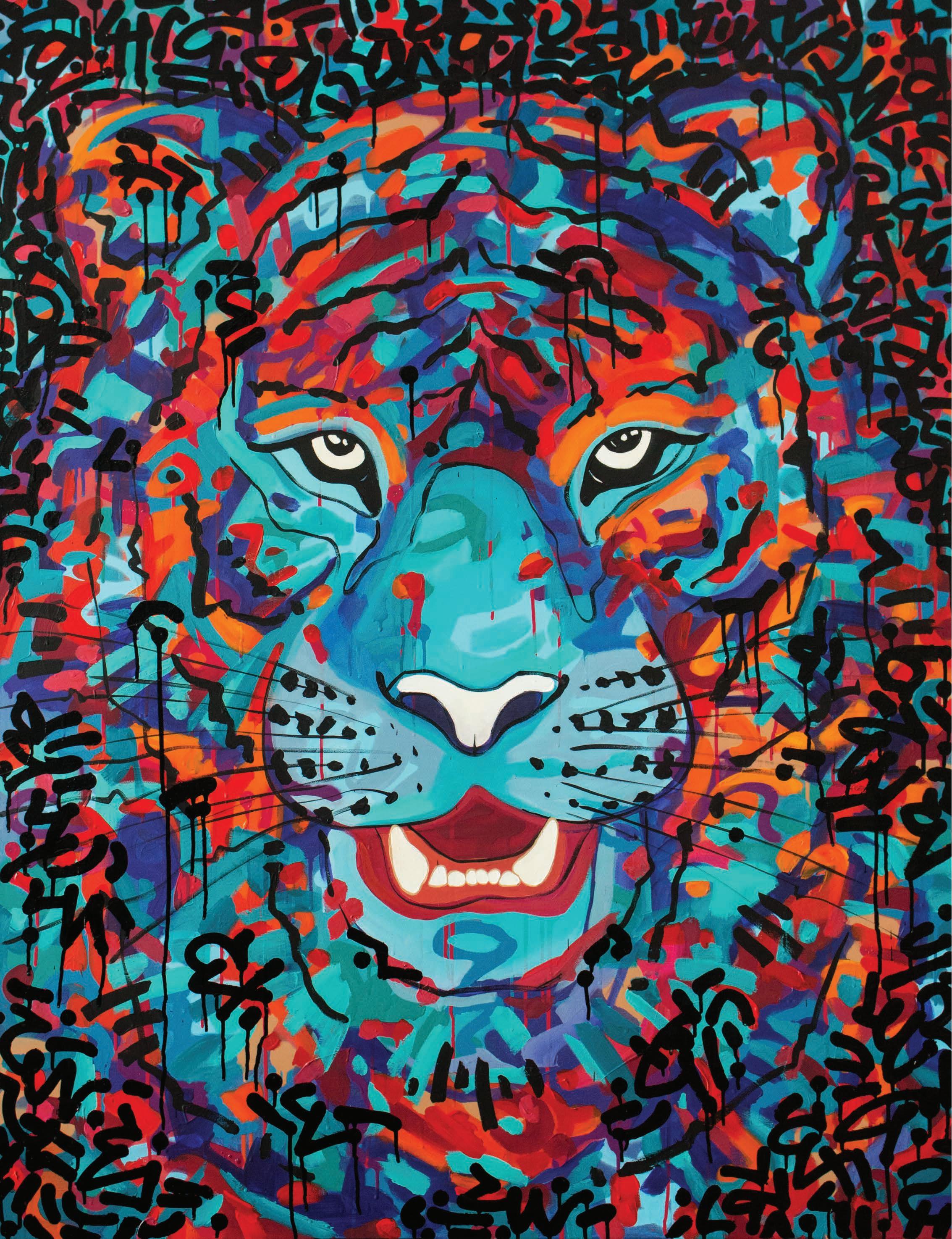 ‘SIMPLE WAY TO THE MADNESS OF A TIGER’ 2021. 130x100 cm. Acrylic paint and gra ti on canvas.