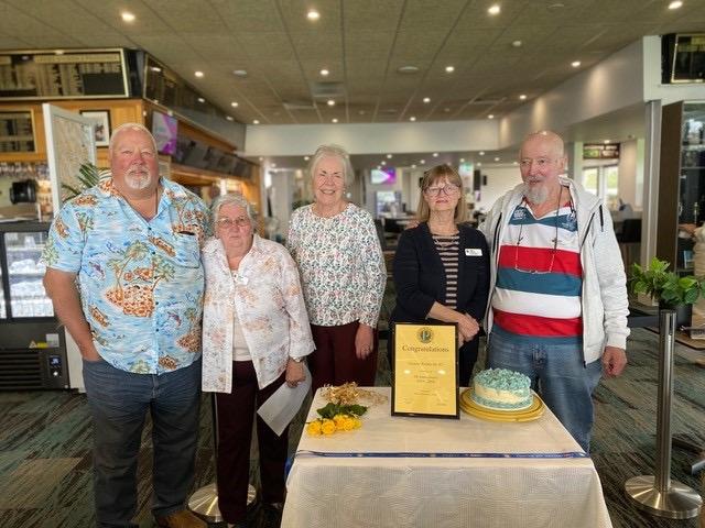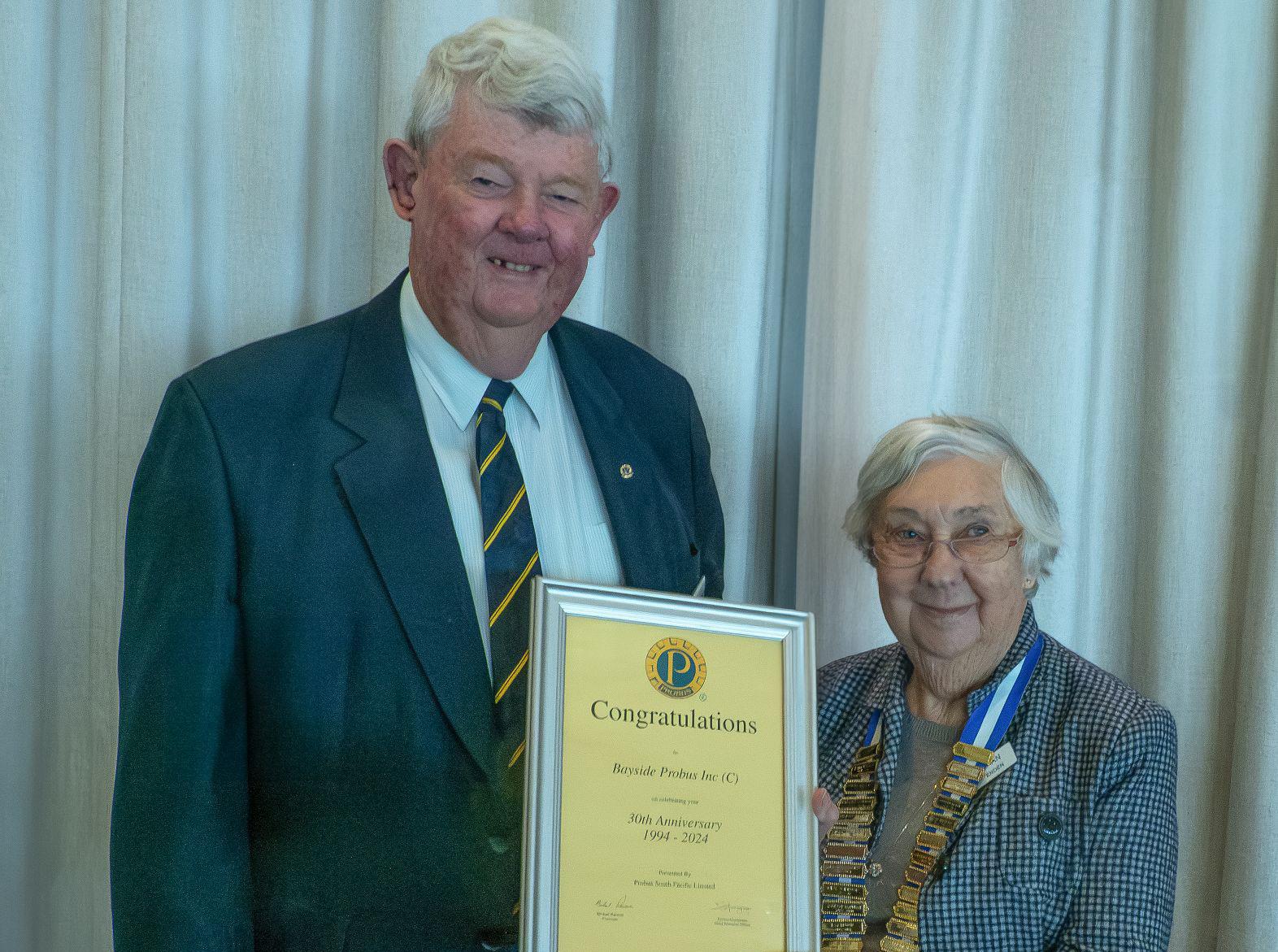 The Probus South Pacific certificate was presented by the current President of the Rotary Club of Gosford West, Andrew, alongside long-standing Rotarian, Mary.