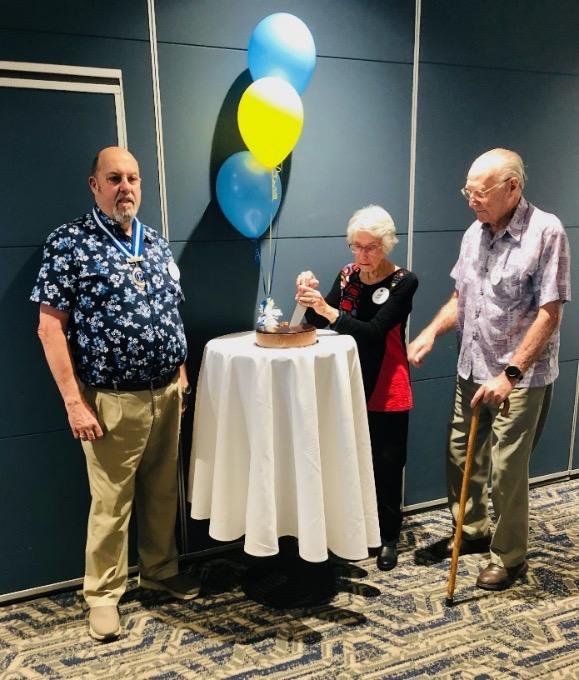 The cake was cut by Club President, Bevan, who was assisted by life members.
