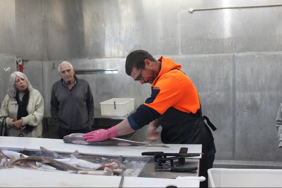 Members were lucky to experience the unloading of a trawler, watching fresh fish come off the boat and being packed into ice.
