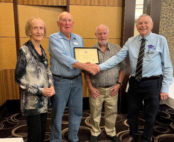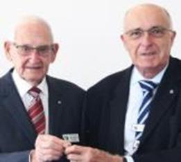 Brian presenting a Life Membership certificate to Pierce who also celebrated his 100th birthday.