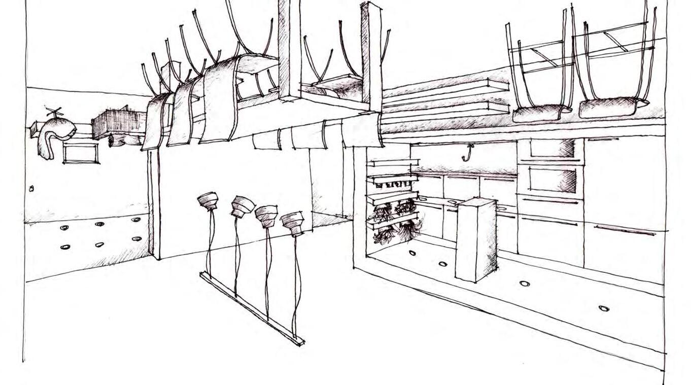Veřejnou dominantní část tvoří bytový dům o 5NP s kavárnou v parteru. Soukromou část tvoří studentské bydlení se zeleným vnitroblokem o 3NP.